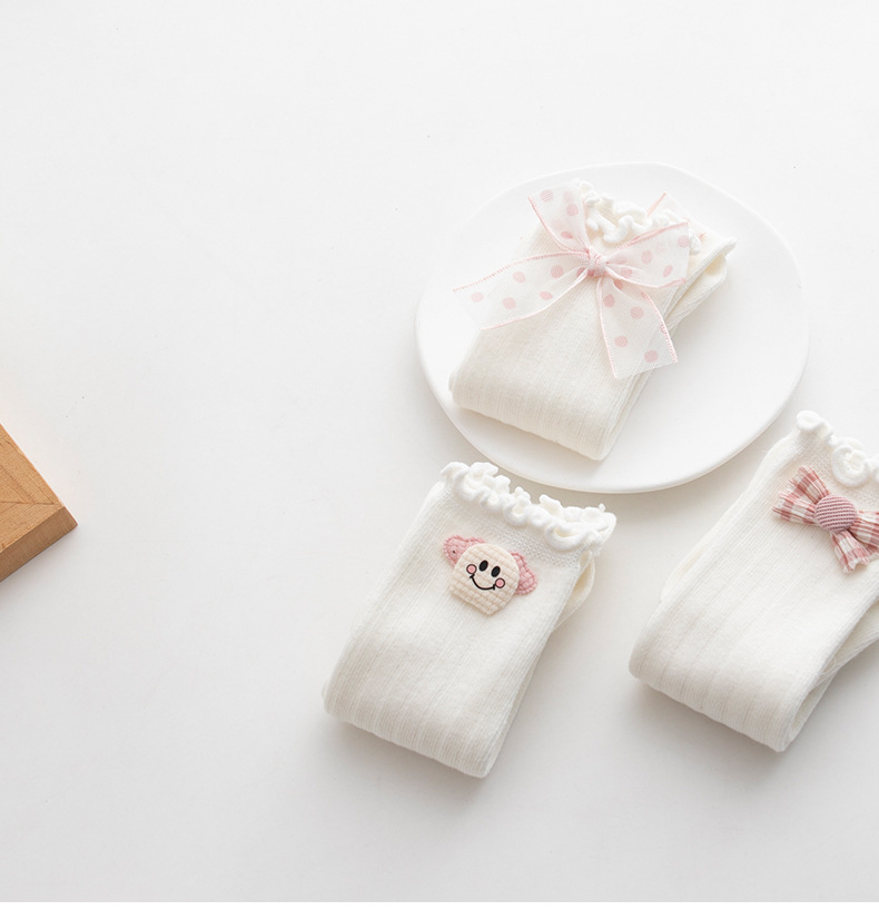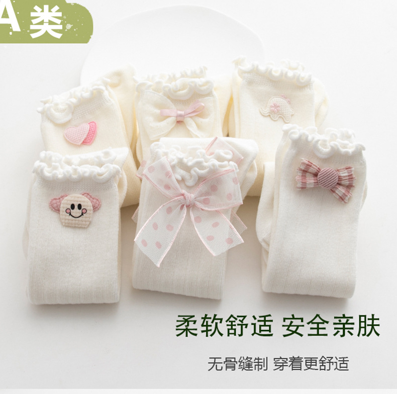 宝宝袜子秋儿童袜子批发DIY蝴蝶结女童中筒袜松口无骨甜蜜公主袜