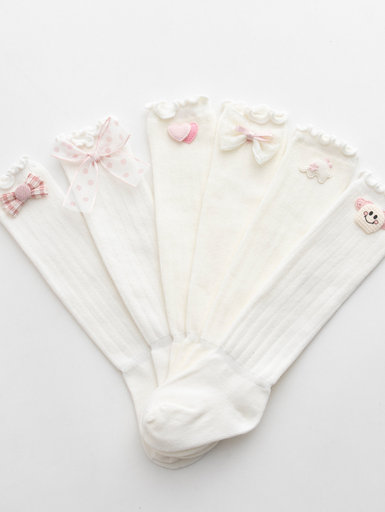 跨境新款女童蝴蝶结中筒袜子甜美儿童春秋女宝宝松口无骨棉袜子