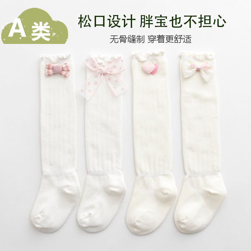 DIY蝴蝶结宝宝过膝长筒袜春秋A类无骨新生儿护腿袜加长婴儿中长筒