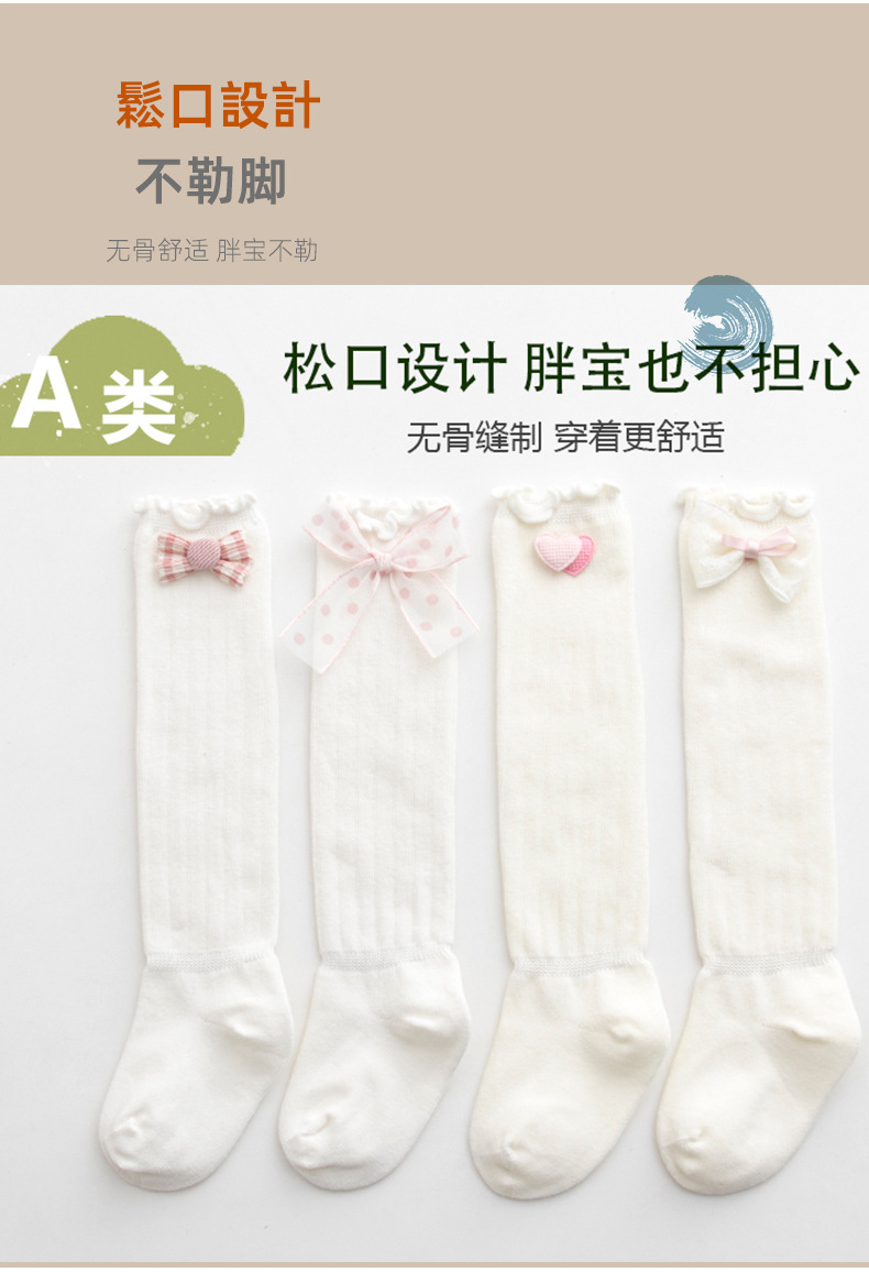 无骨宝宝松口袜秋款新品新生儿中筒袜跨境甜美蝴蝶结婴儿袜批发女