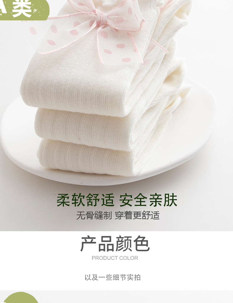 100%棉袜婴儿春秋中筒袜蝴蝶结无骨纯棉袜新生儿短袜秋a类婴幼儿
