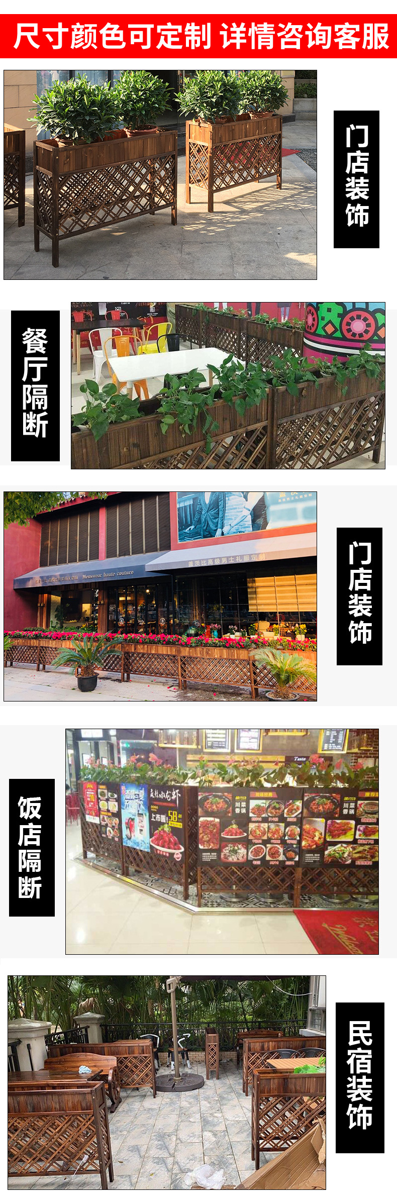 레스토랑 파티션 플라워 랙 야외 플라워 랙 탈착식 우드 코트야드 그리드 꽃 그루브 파티션 나무 울타리 꽃 왕 타오 원스토어 가기