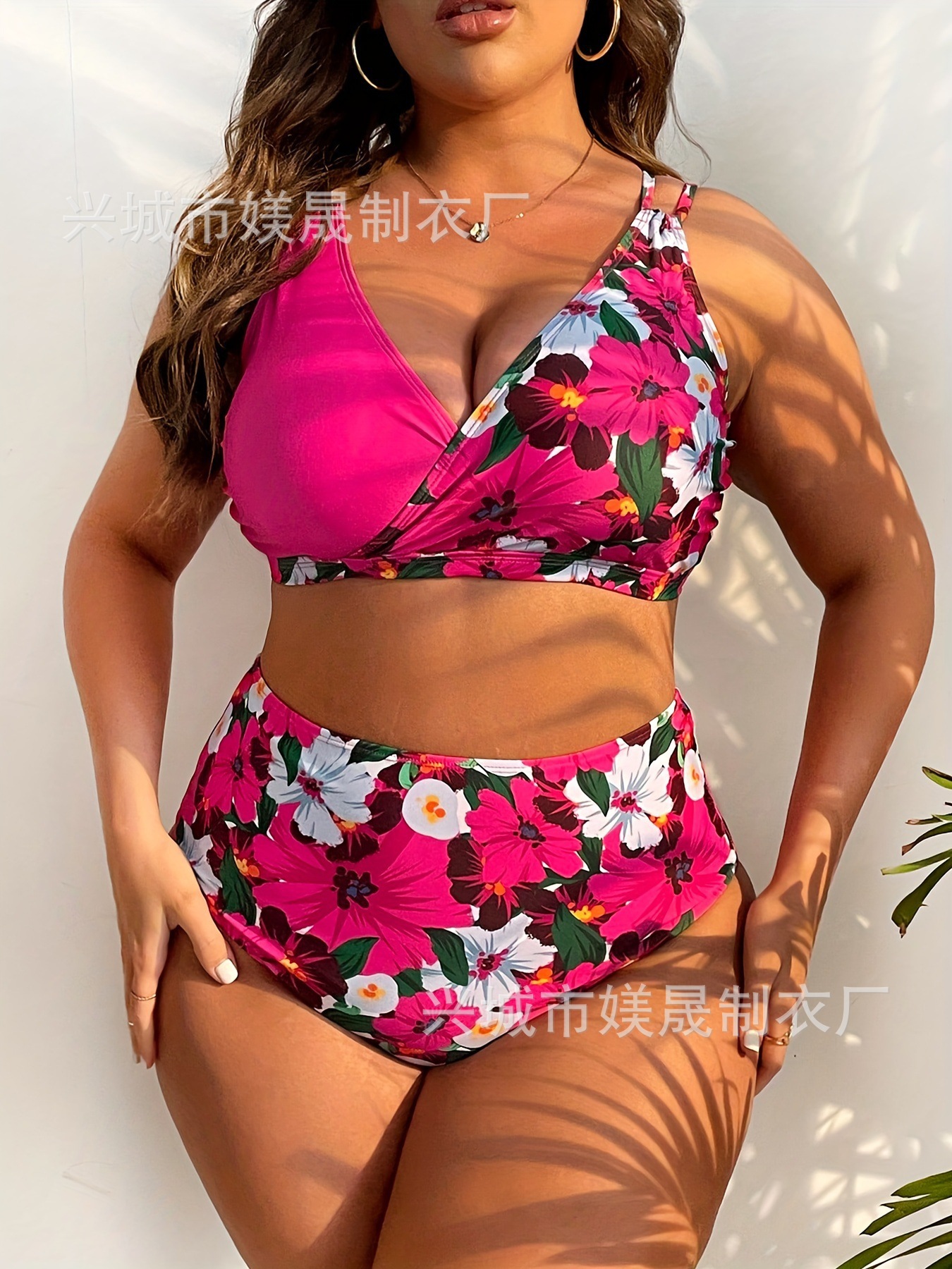 2025 유럽 및 미국 플러스 사이즈 새로운 국경 아마존 스파이스 소녀 꽃집 섹시한 비키니 세트 수영복 여성스토어 가기