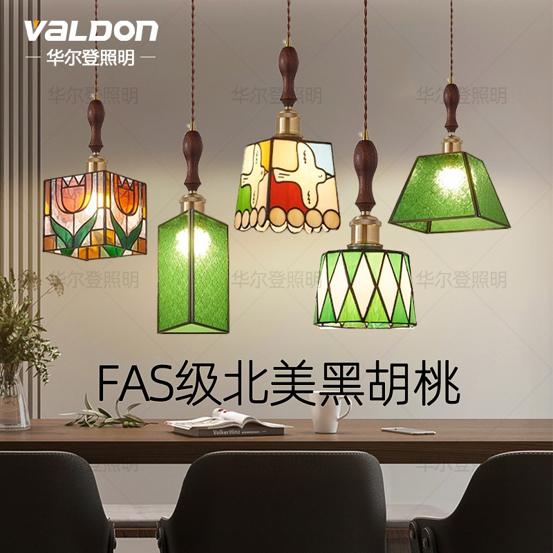 월넛 침대 옆 샹들리에 중미 레트로 크리에이티브 레스토랑 복도 바 나무 샹들리에 작은 샹들리에