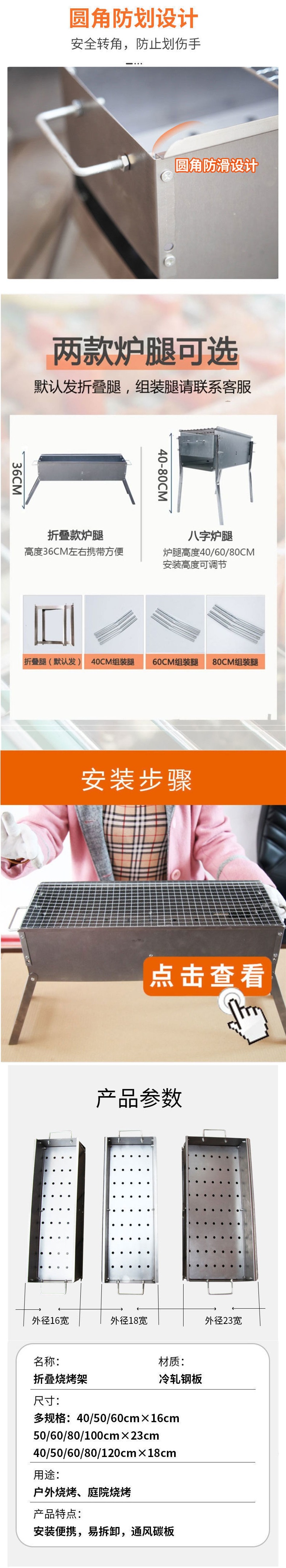 바베큐 그릴 바베큐 랙 가정용 야외 숯 바베큐 접히는 전체 세트 숯 대형 스몰 사이즈 현장 근무 시간 Huixia스토어 가기