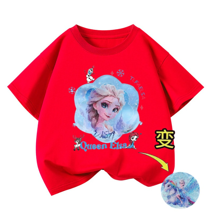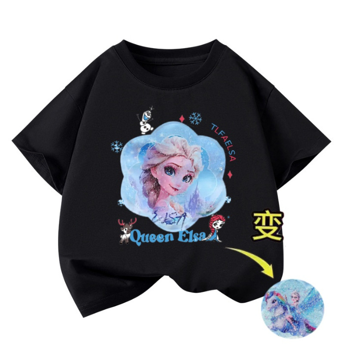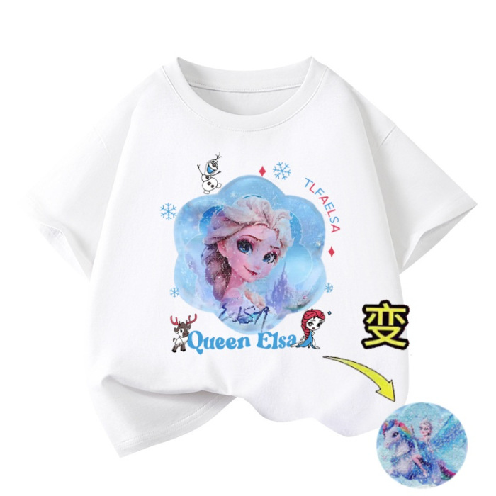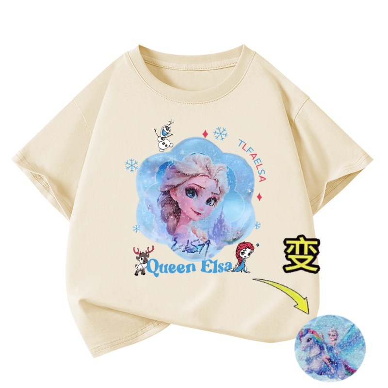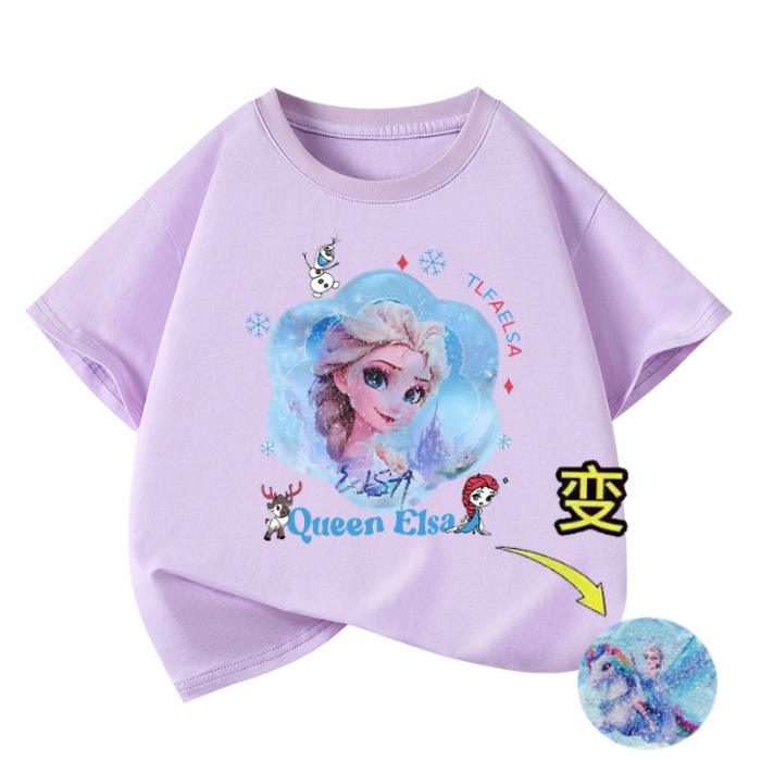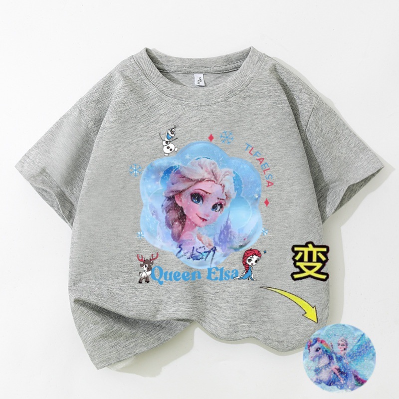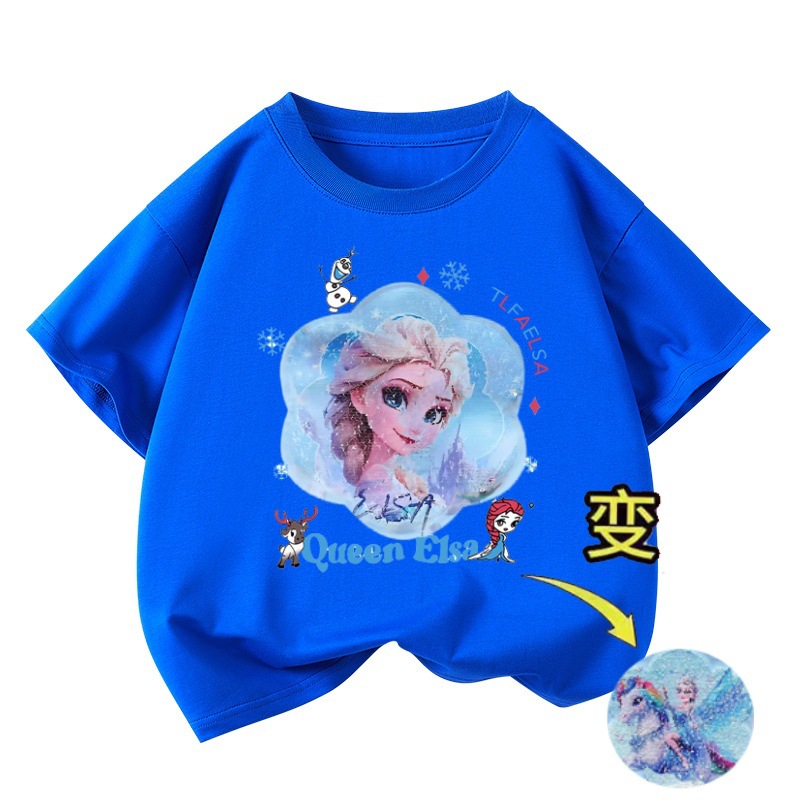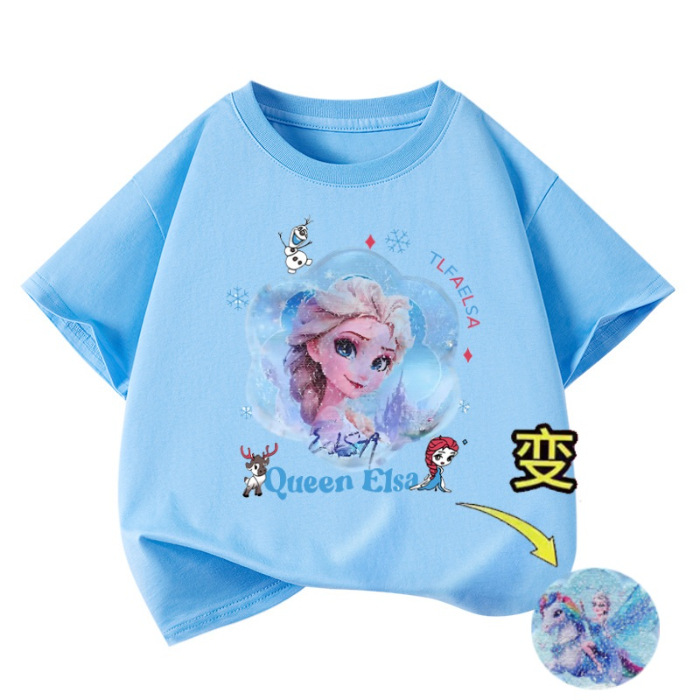소녀 새 여름 엘사 플립 시프트 패턴 스퀸 반팔 티셔츠스토어 가기