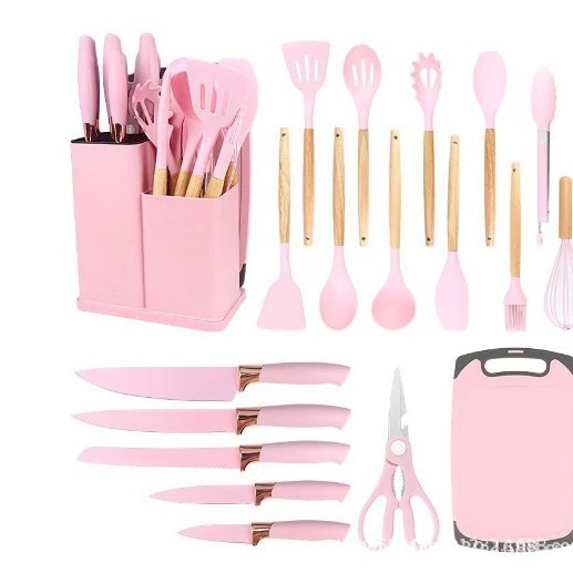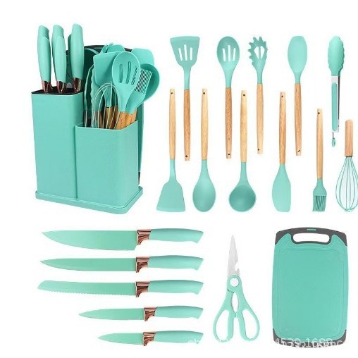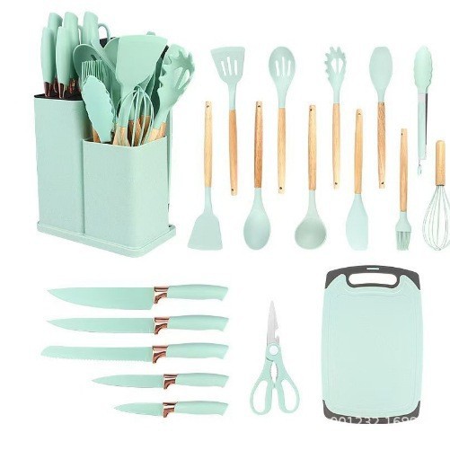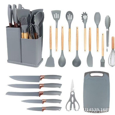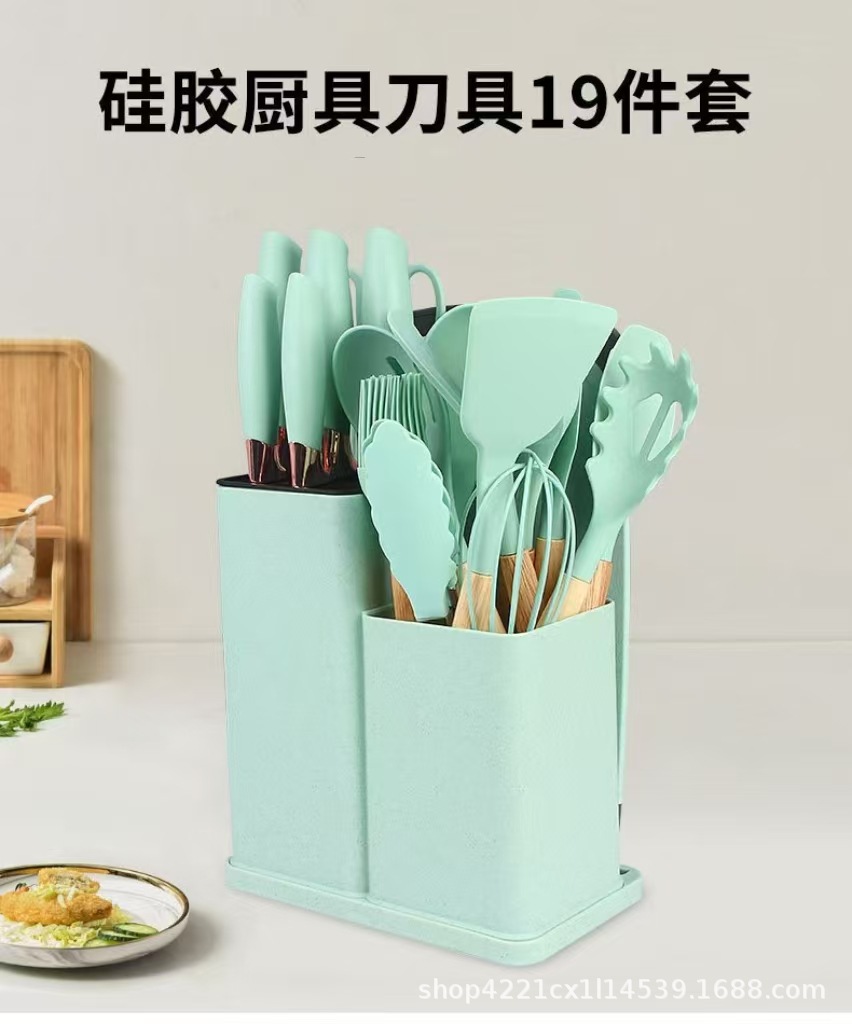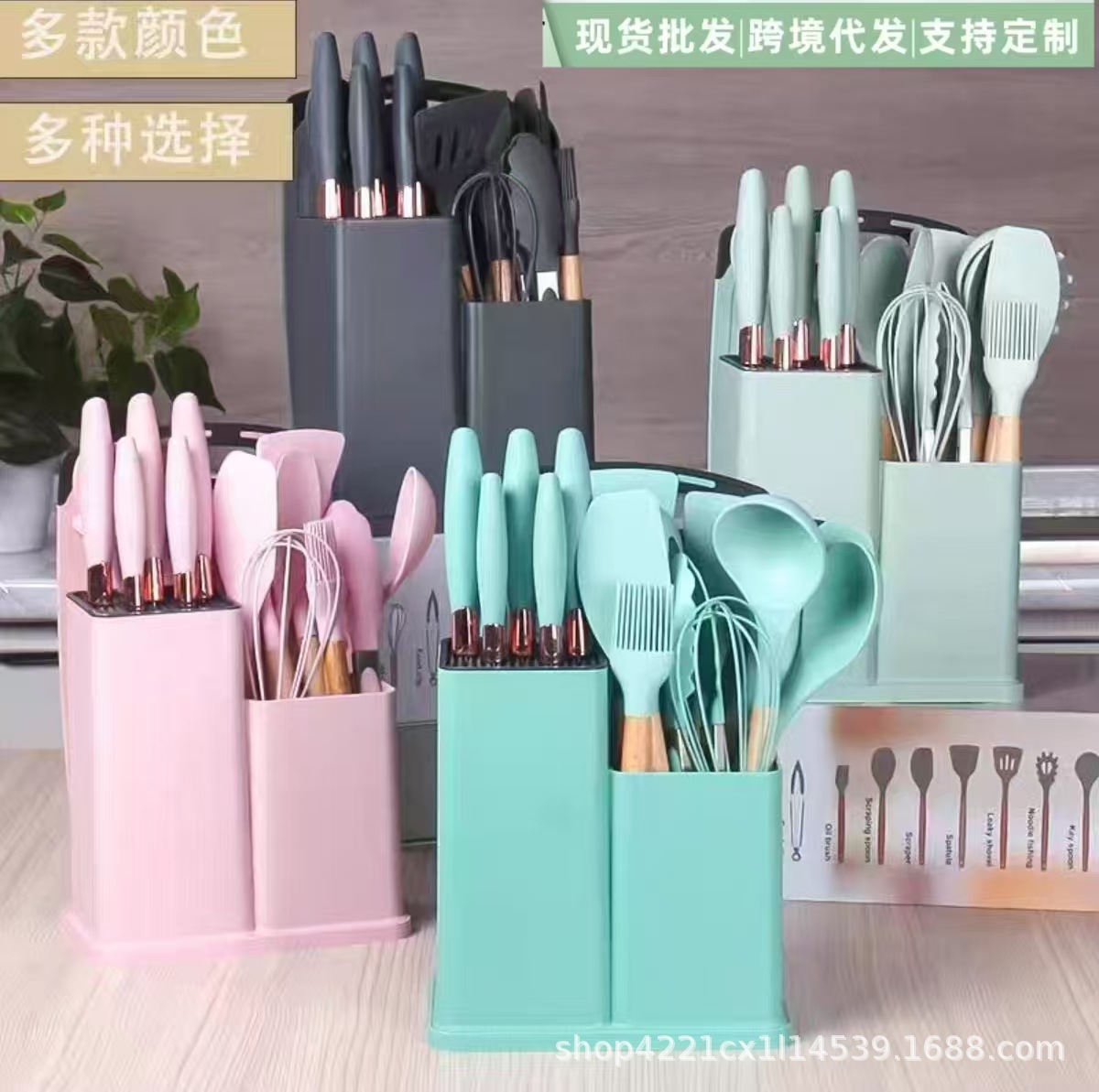 국경 간 무역 실리콘 주방용품 19종 세트, 뒤집개, 국자, 칼 세트, 주방용품 보관통, 주방용품