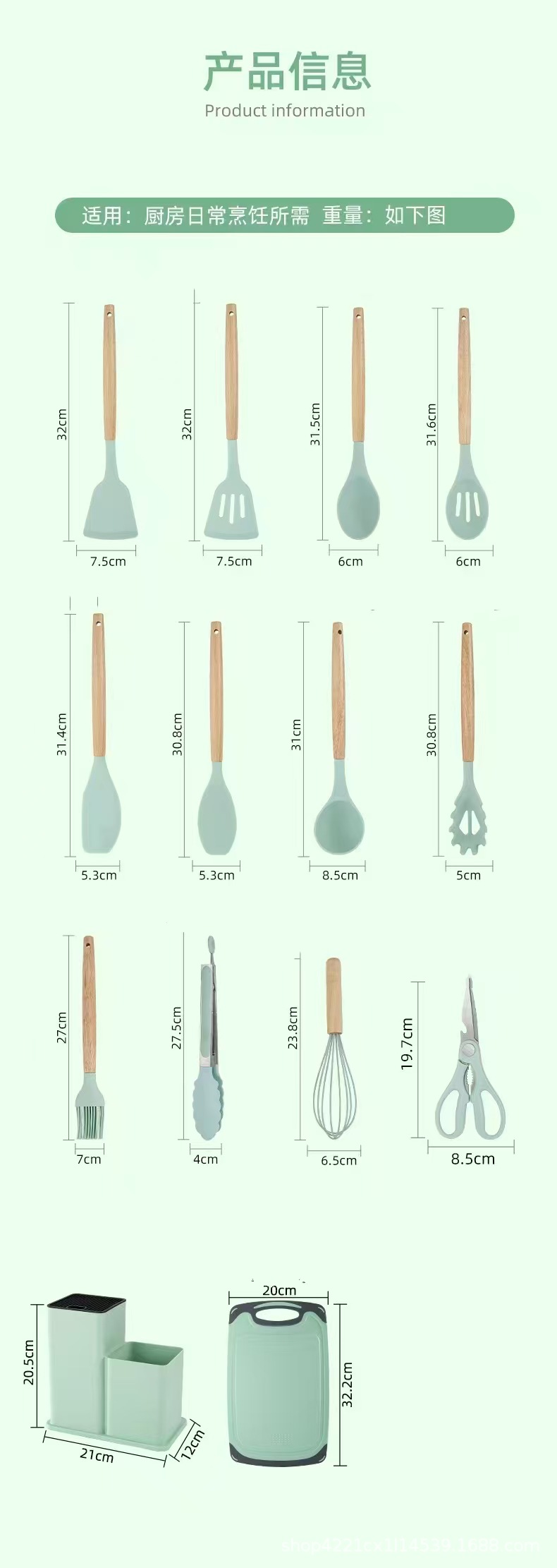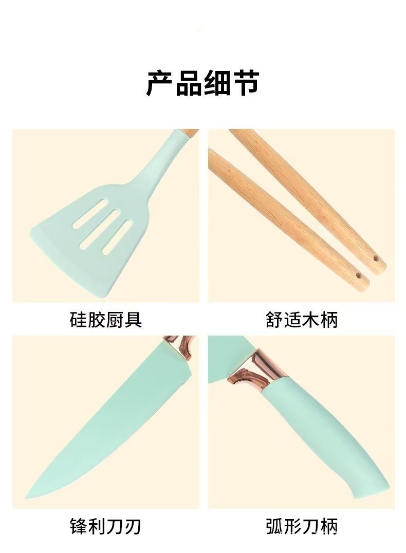 국경 간 무역 실리콘 주방용품 19종 세트, 뒤집개, 국자, 칼 세트, 주방용품 보관통, 주방용품스토어 가기