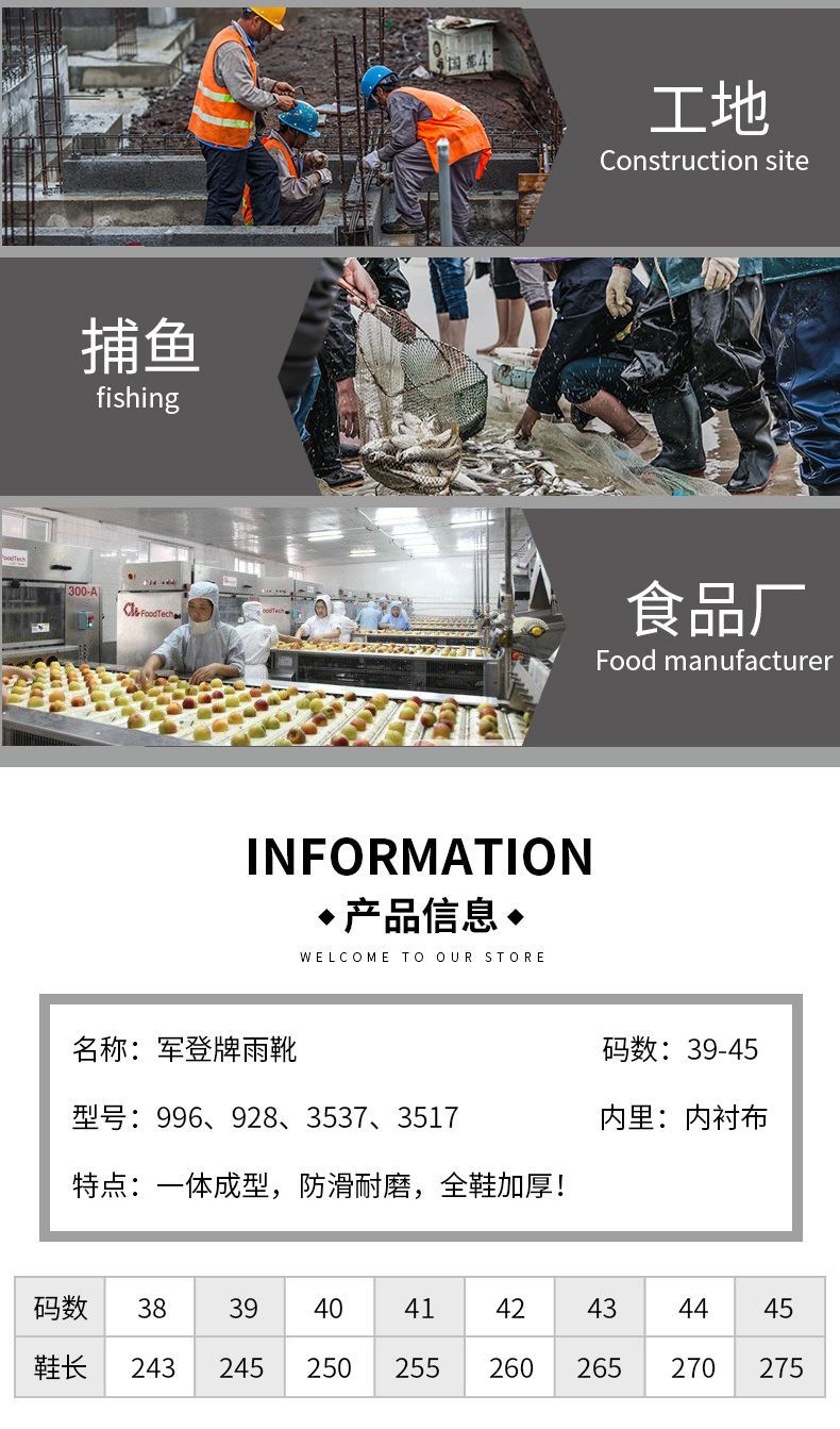 Jundeng Beef 단독 방수 미끄럼 방지 장화 남성용 고수 장화 남성용 건설 현장 장화 중장화 주방 저수장화스토어 가기