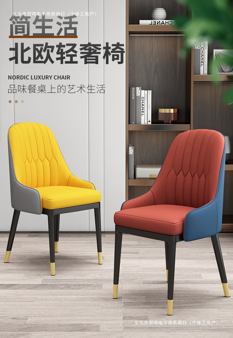 노르딕 라이트 럭셔리 다이닝 의자 홈 현대 간단한 인터넷 연예인 등받이 의자 레스토랑 가죽 소프트 백 가방 호텔 다이닝 테이블 의자