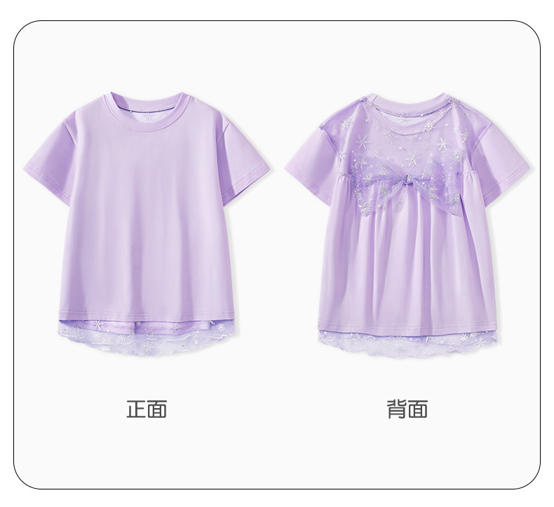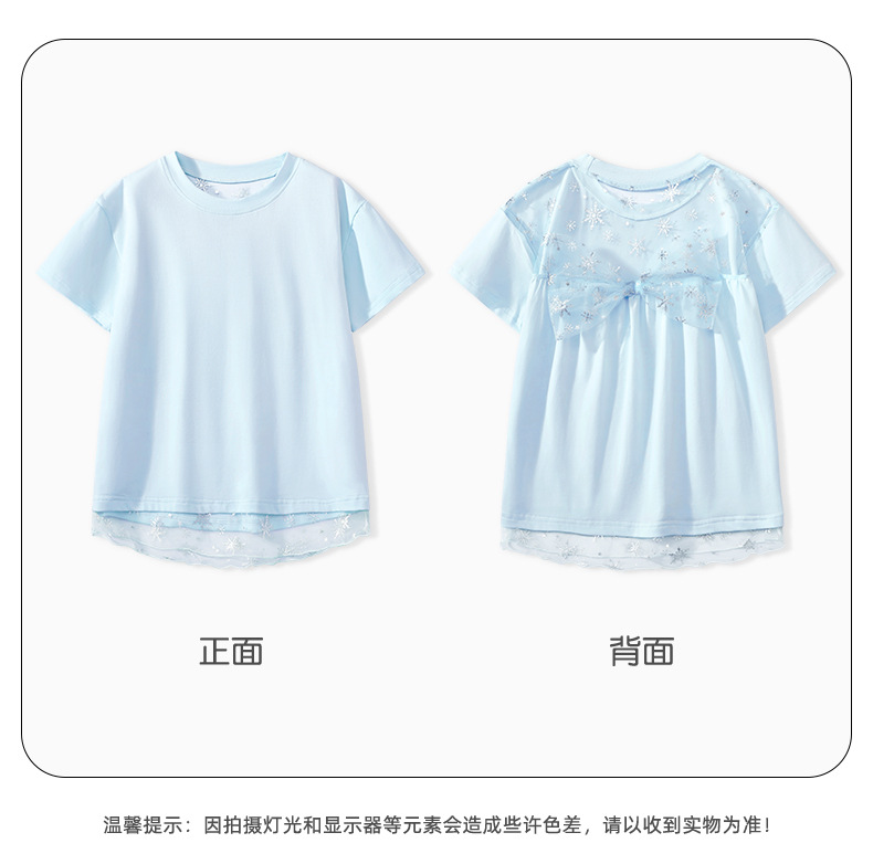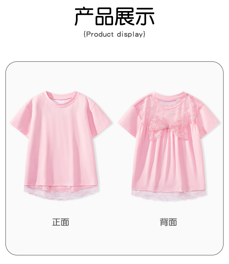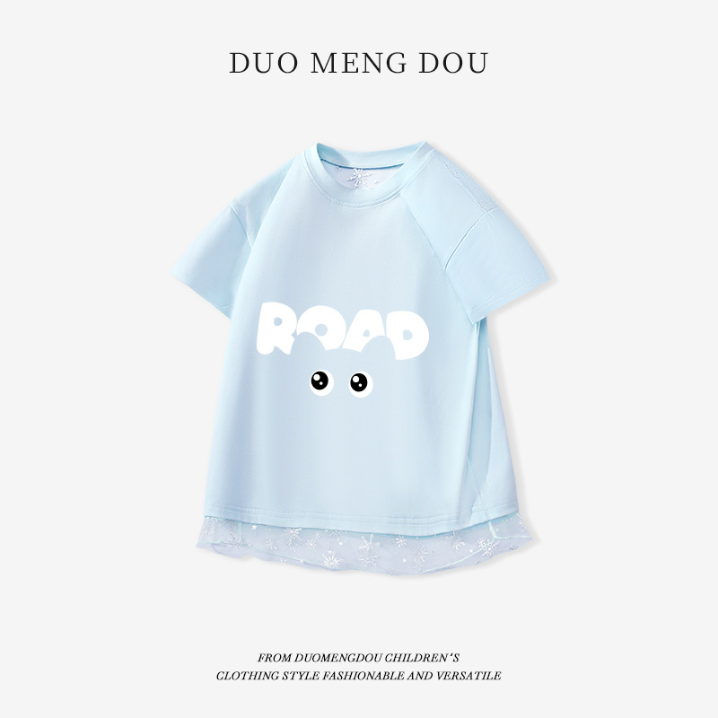 여자 반소매 여자 쿨 티셔츠 큰 어린이 얇은 둥근 목 반소매 여름 새로운 어린이 메쉬 바느질 탑스토어 가기