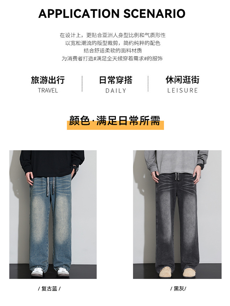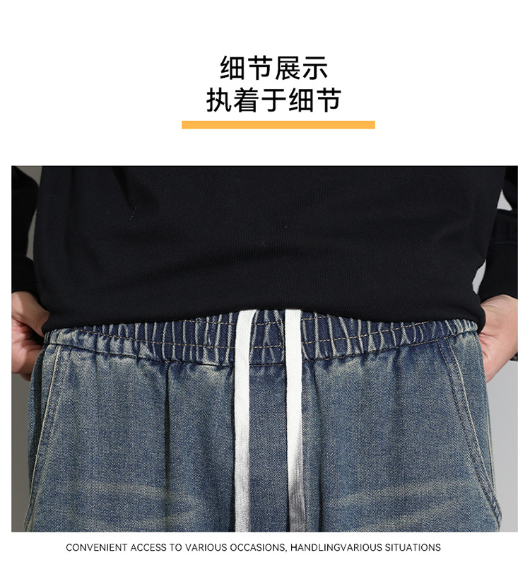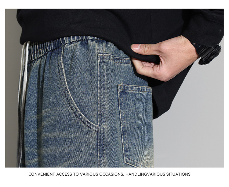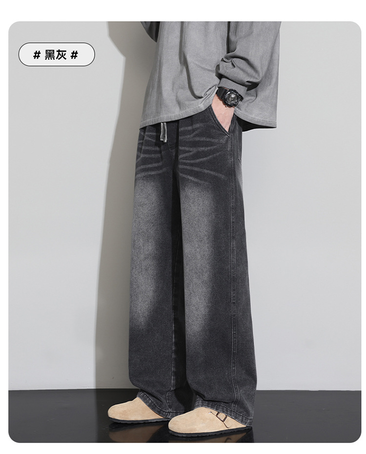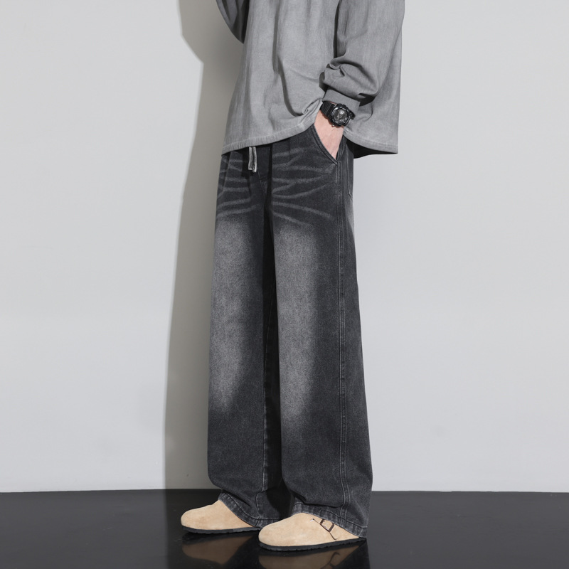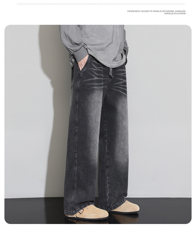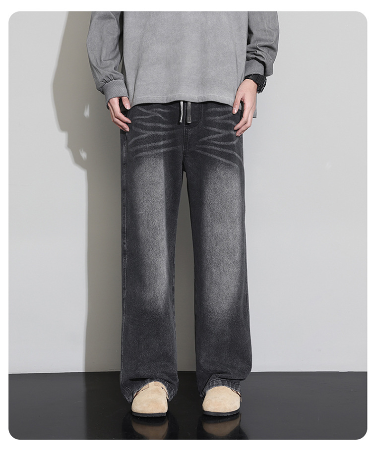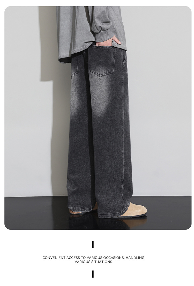 플러스 사이즈 아메리칸 스타일 레트로 하이 스트리트 오래 된 넓은 다리 솔리드 컬러 고양이 청바지 뚱뚱한 남자의 느슨한 스트레이트 트렌디 브랜드스토어 가기