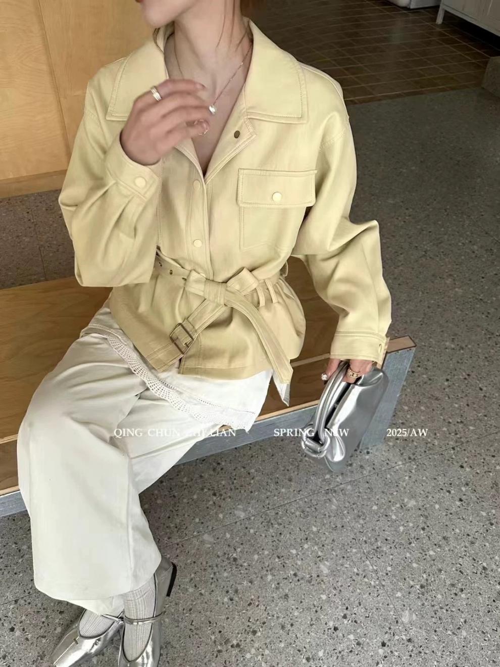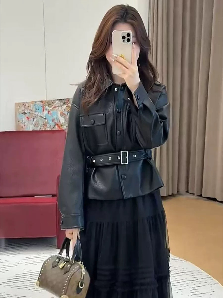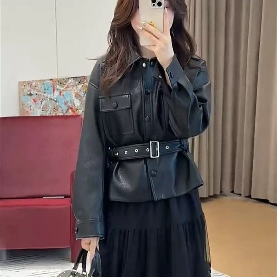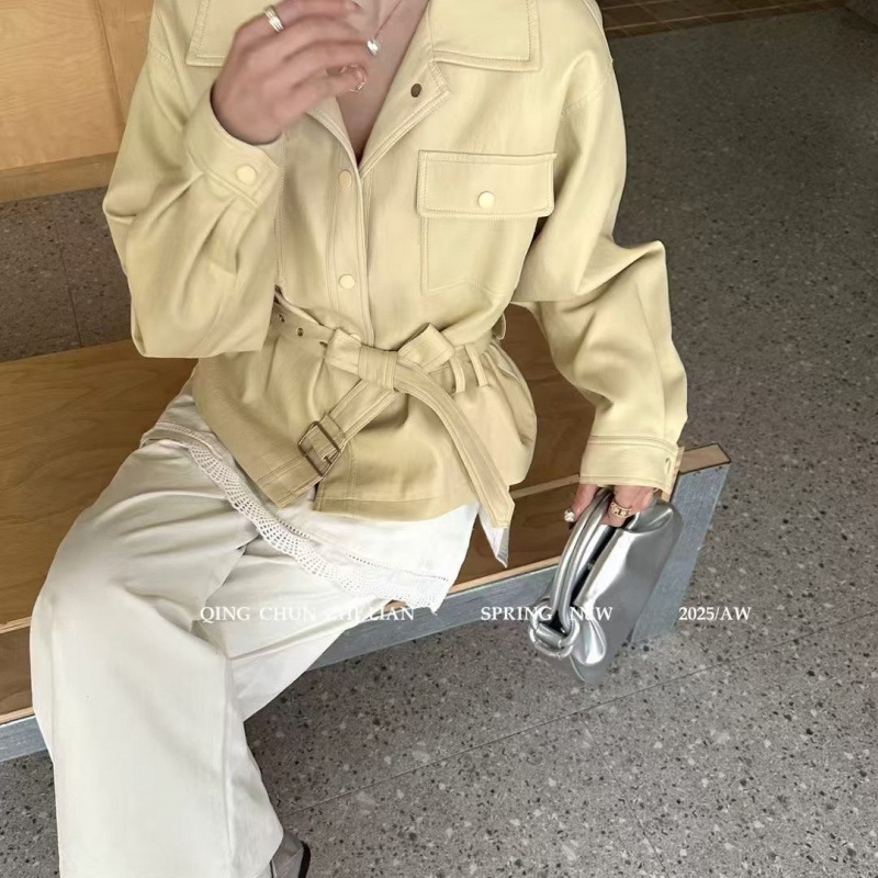 레트로 PU 가죽 옷깃 달콤한 시원한 스타일 허리 짧은 가죽 코트 여성의 2025 봄 새로운 스타일스토어 가기