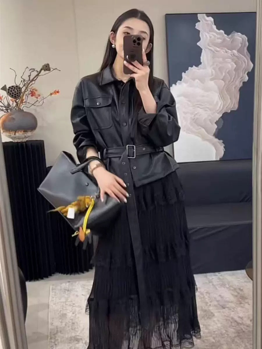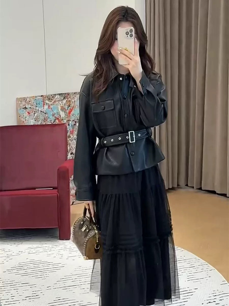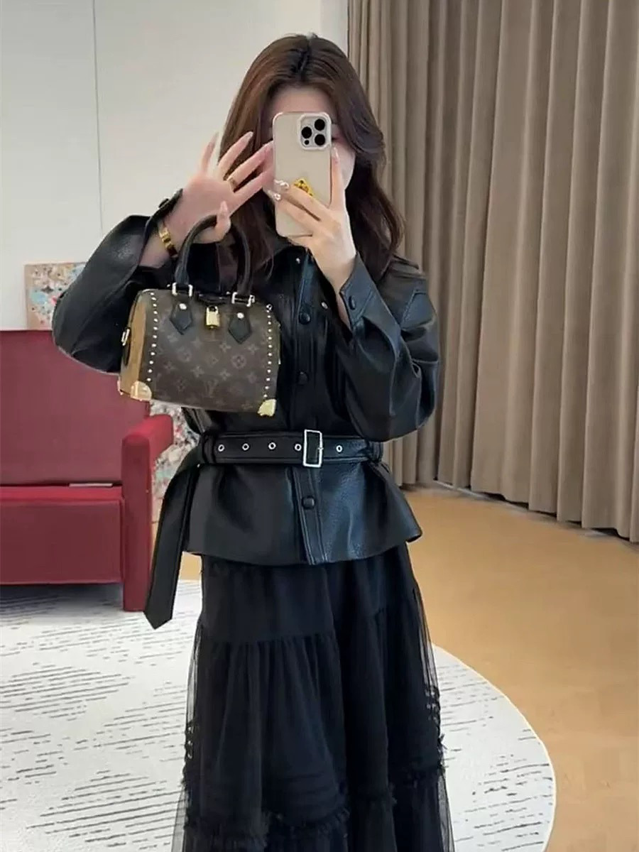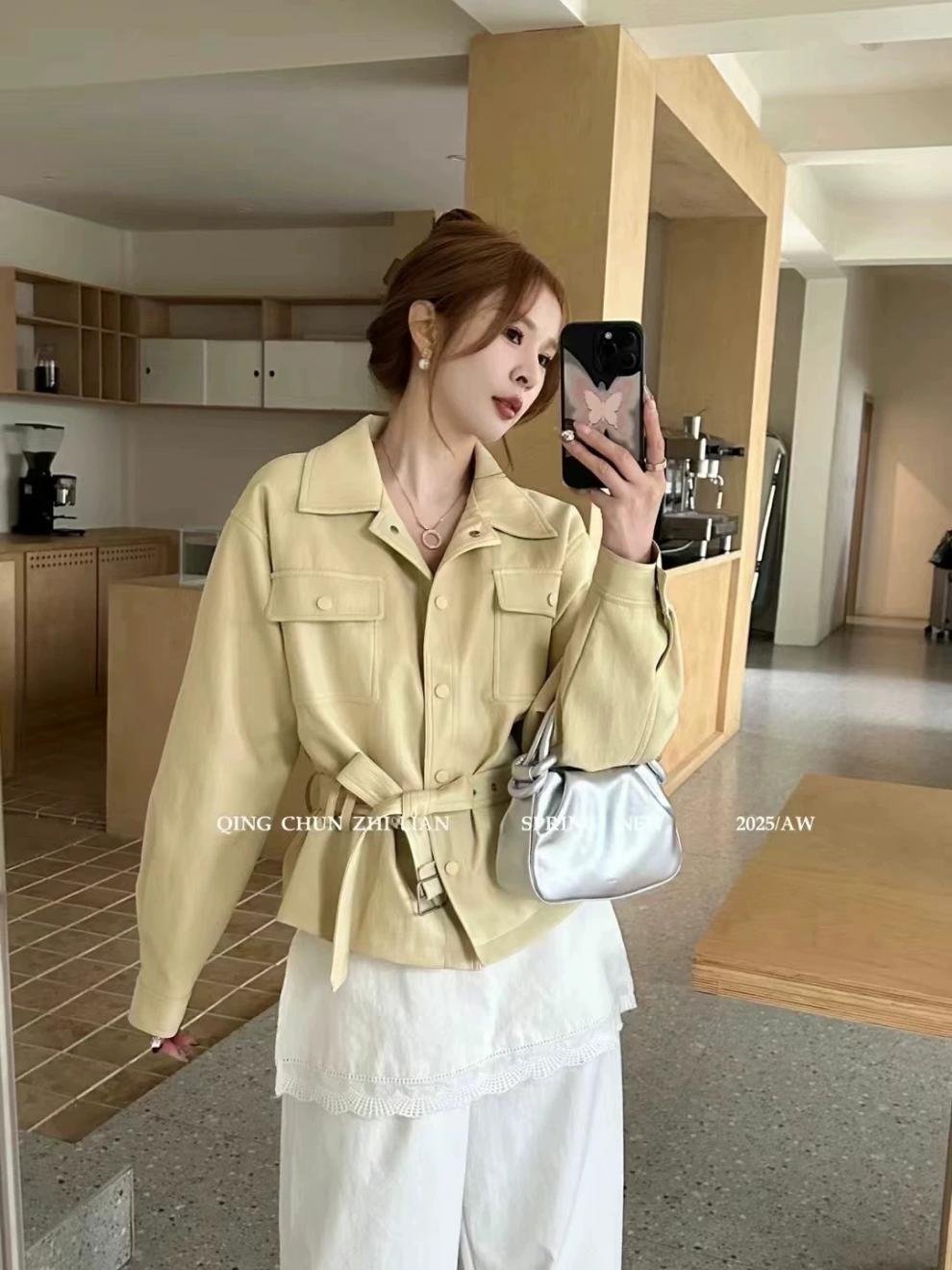 레트로 PU 가죽 옷깃 달콤한 시원한 스타일 허리 짧은 가죽 코트 여성의 2025 봄 새로운 스타일스토어 가기