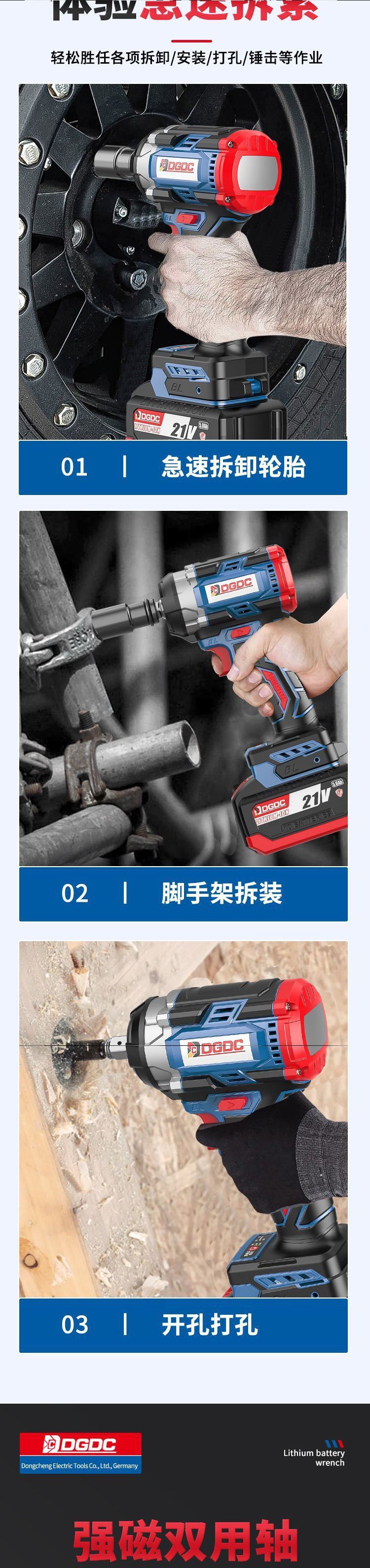 • 5.0 배터리 2개와 충전기 1개 만능 왕-DG-BL688K 텅스텐 강철 이중 목적 샤프트 타악기 모델