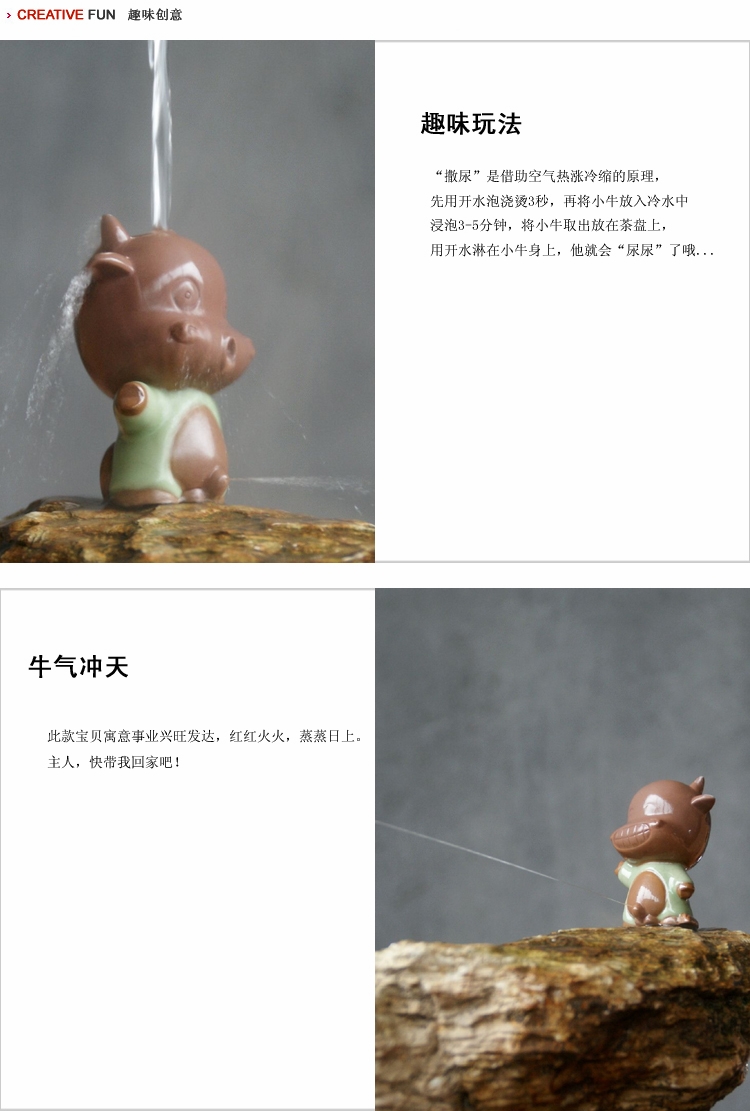 Chenxiang Ge Kiln Tea 애완 동물은 참신 물 스프레이를 올릴 수 있습니다 작은 소변 어린이 장식품 부티크 보라색 모래 차 왕 타오 원스토어 가기