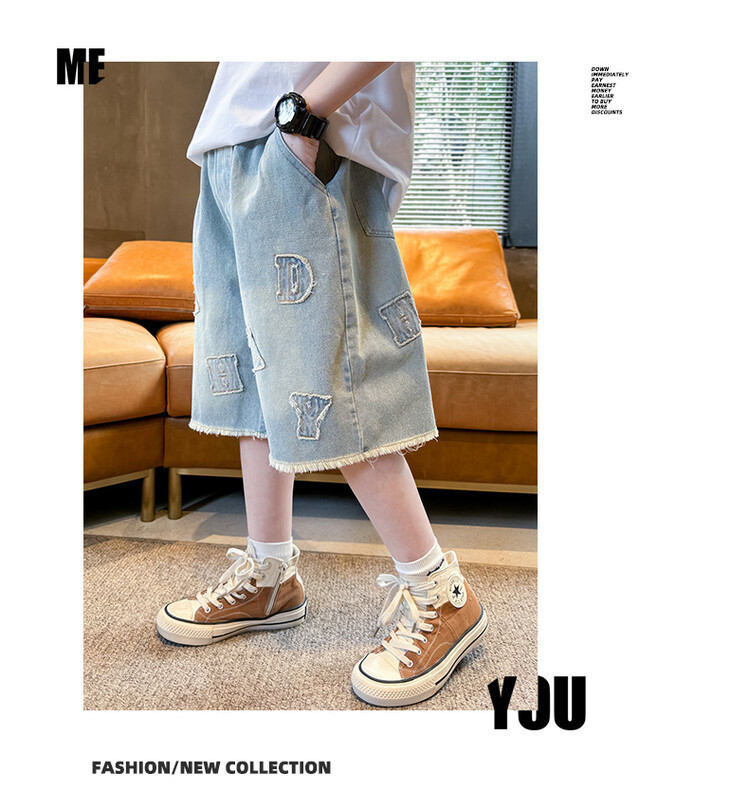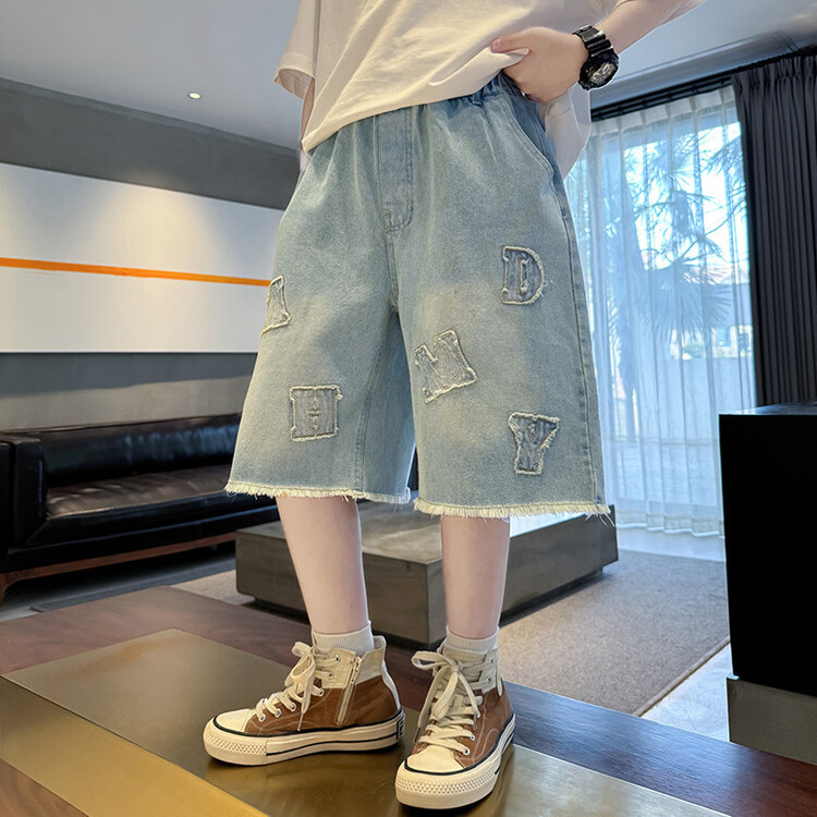 남학생 랩 데님 바지 여름 얇은 어린이 느슨한 바지 소년 잘 생긴 넓은 다리 반바지 국경 간 반바지스토어 가기