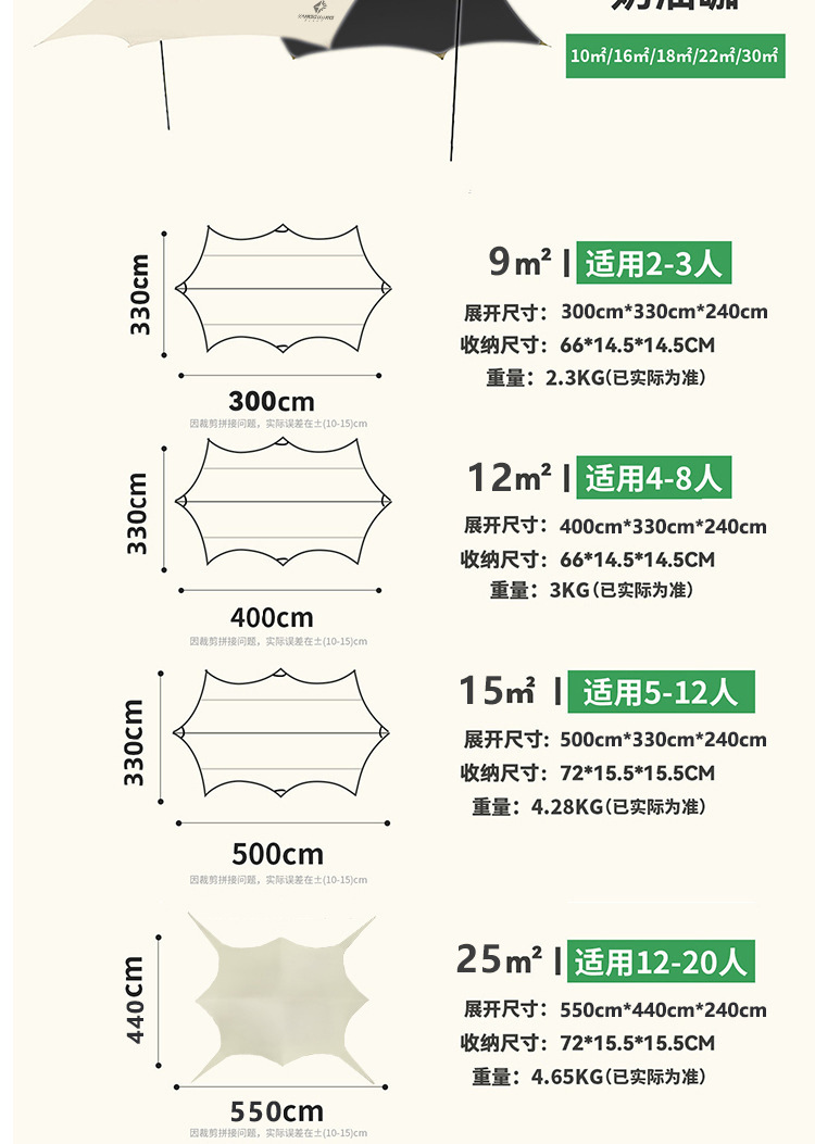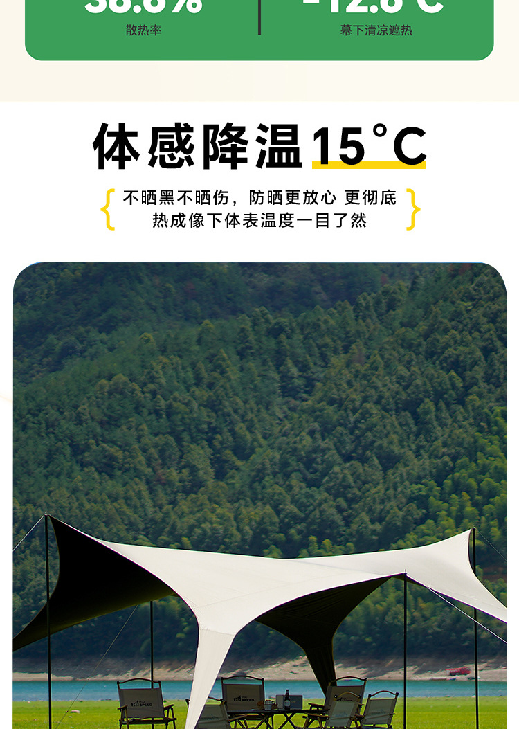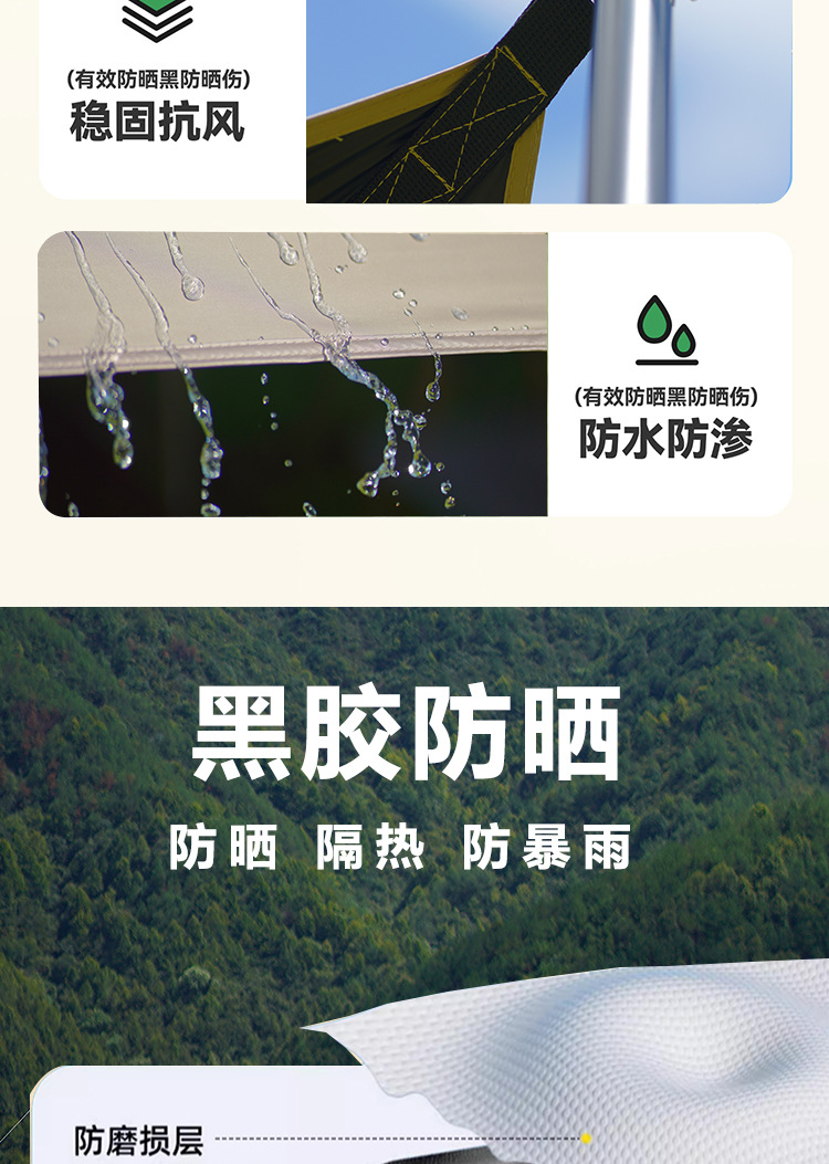 검은 고무 캐노피 텐트 야외 캠핑 피크닉 휴대용 방수 자외선 차단제 나비 팔각형 두꺼운 코팅 차양