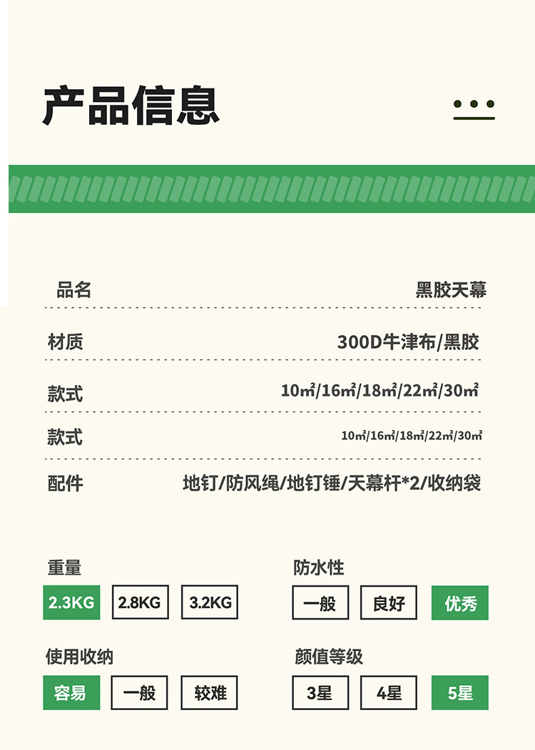 검은 고무 캐노피 텐트 야외 캠핑 피크닉 휴대용 방수 자외선 차단제 나비 팔각형 두꺼운 코팅 차양스토어 가기