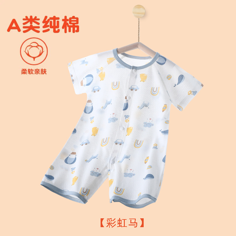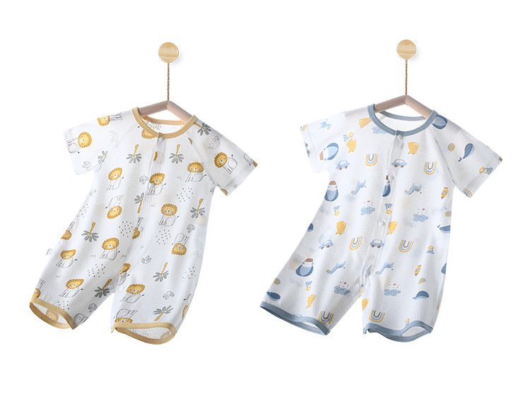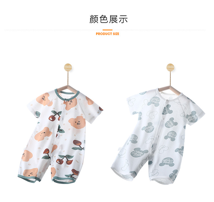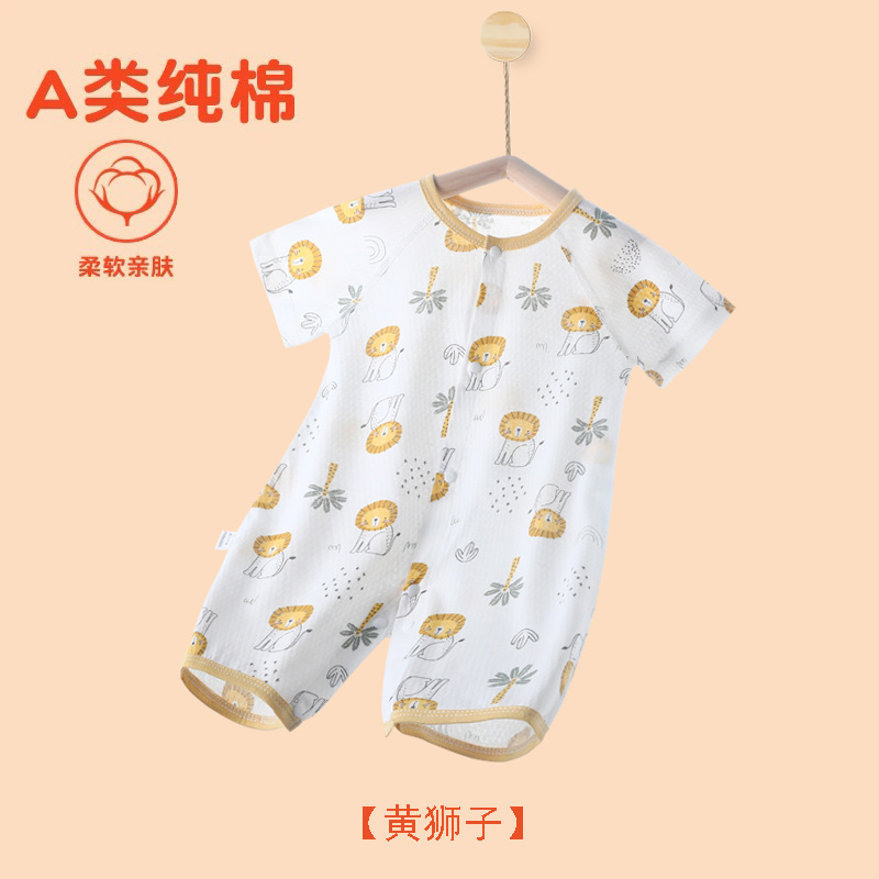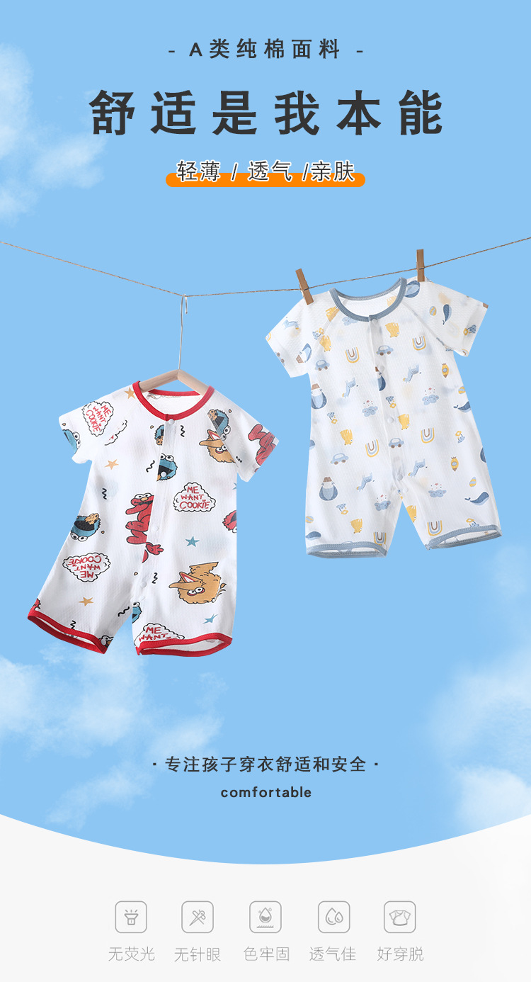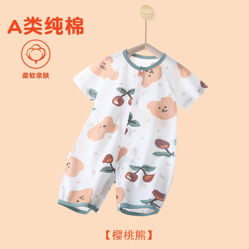 아기의 여름 반팔 점프 수트 신생아의 퓨어 코튼 메쉬 하퍼 아기의 여름 에어컨 방 잠옷 등반 옷