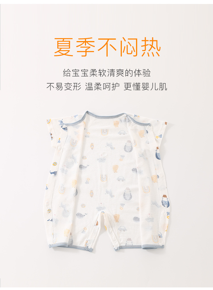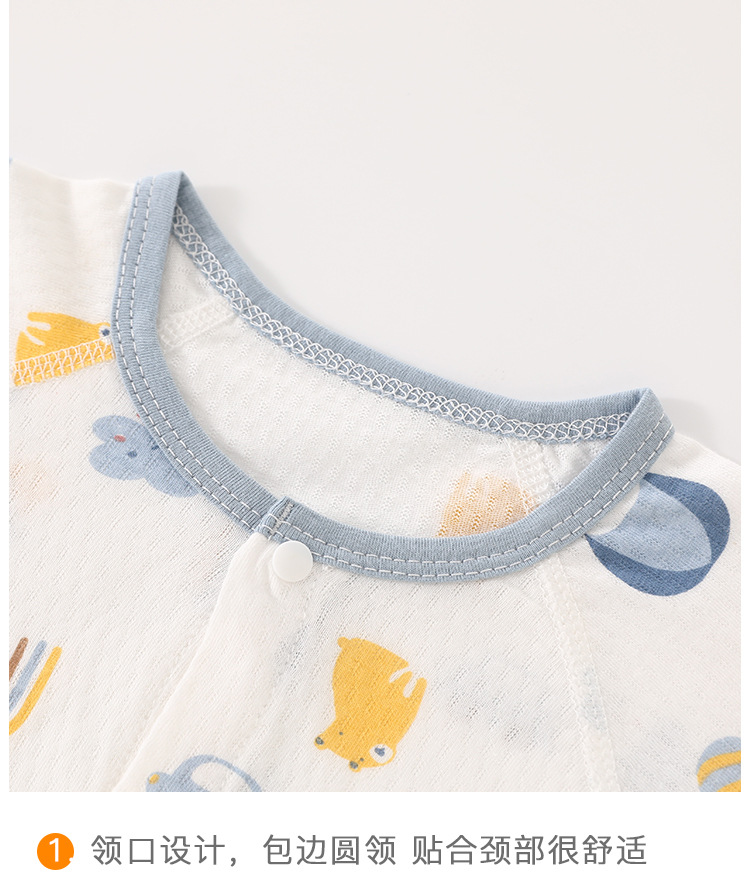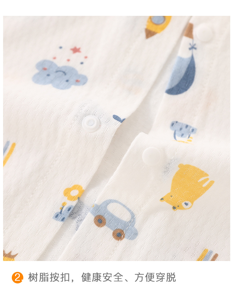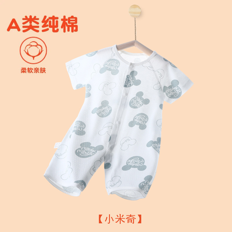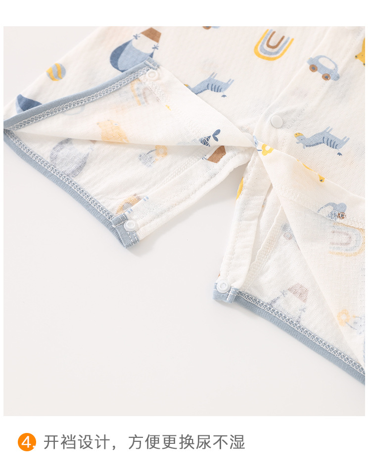 아기의 여름 반팔 점프 수트 신생아의 퓨어 코튼 메쉬 하퍼 아기의 여름 에어컨 방 잠옷 등반 옷