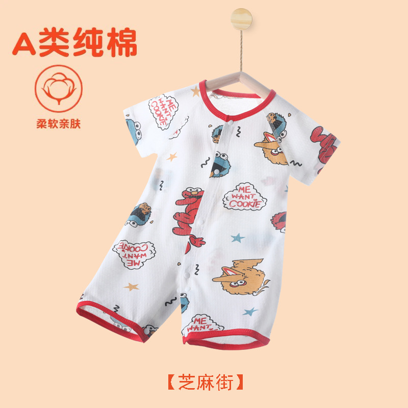 아기의 여름 반팔 점프 수트 신생아의 퓨어 코튼 메쉬 하퍼 아기의 여름 에어컨 방 잠옷 등반 옷스토어 가기