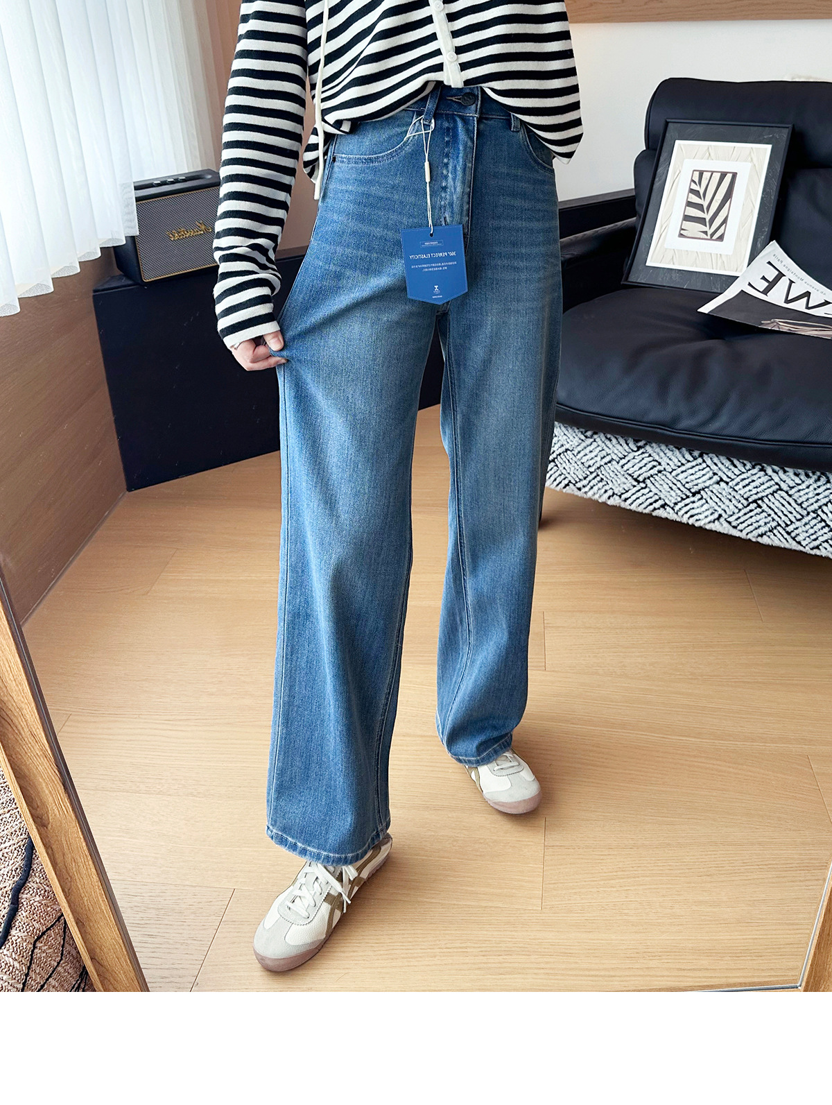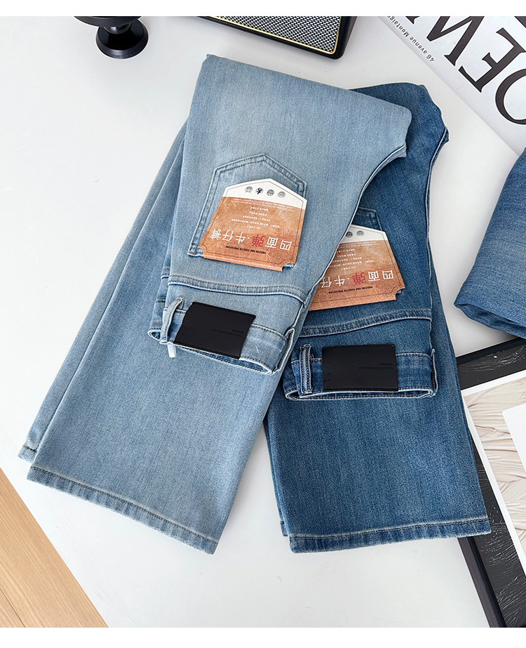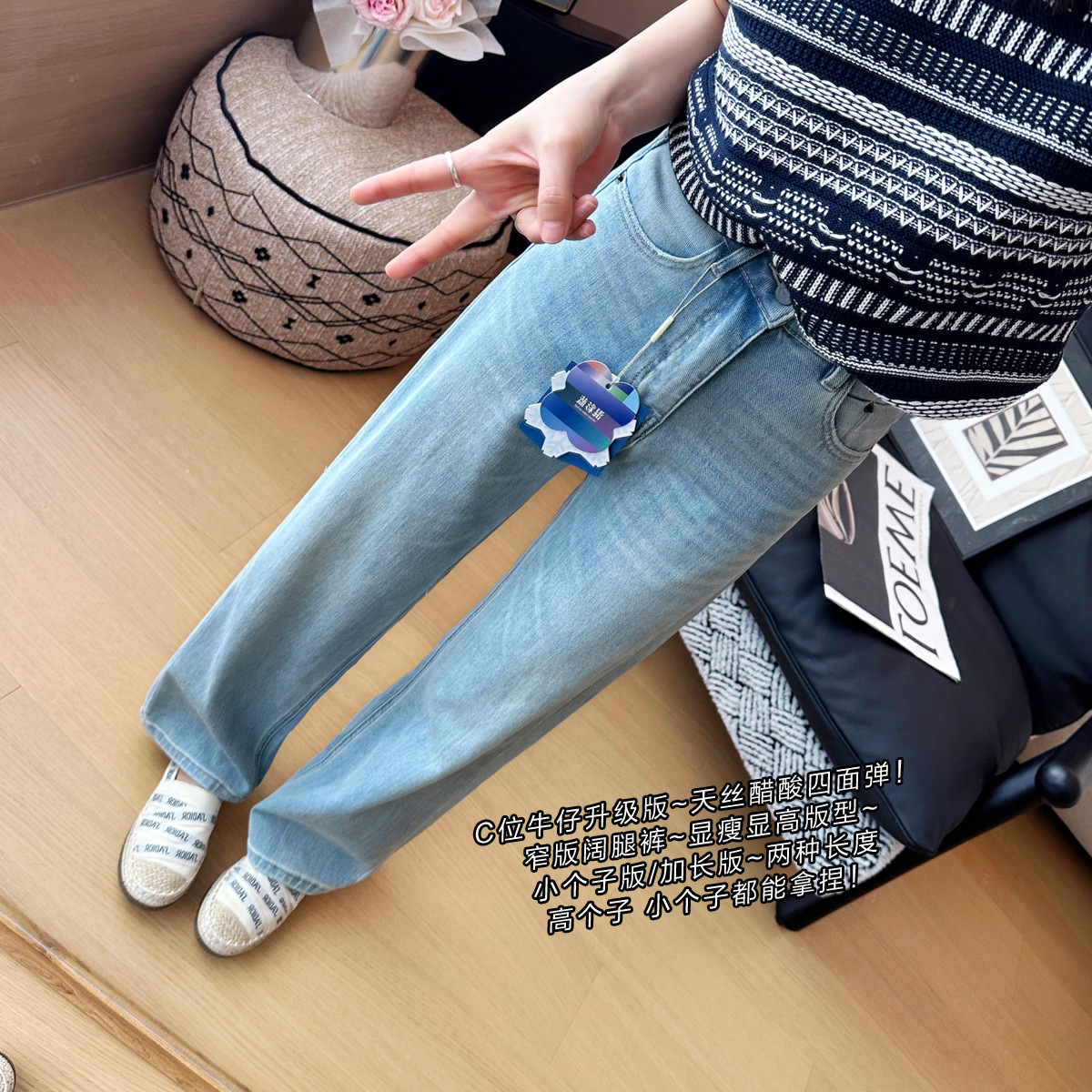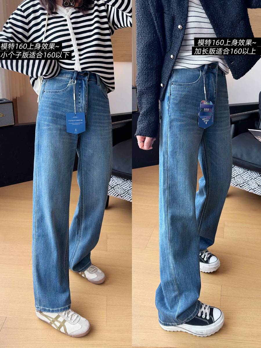 C 비트 데님 ~ 두 길이! 텐셀 아세트산 4 면 탄성 와이드 레그 바지 여성용 슬리밍 펜던트 좁은 길이의 스트레이트 레그 바지스토어 가기
