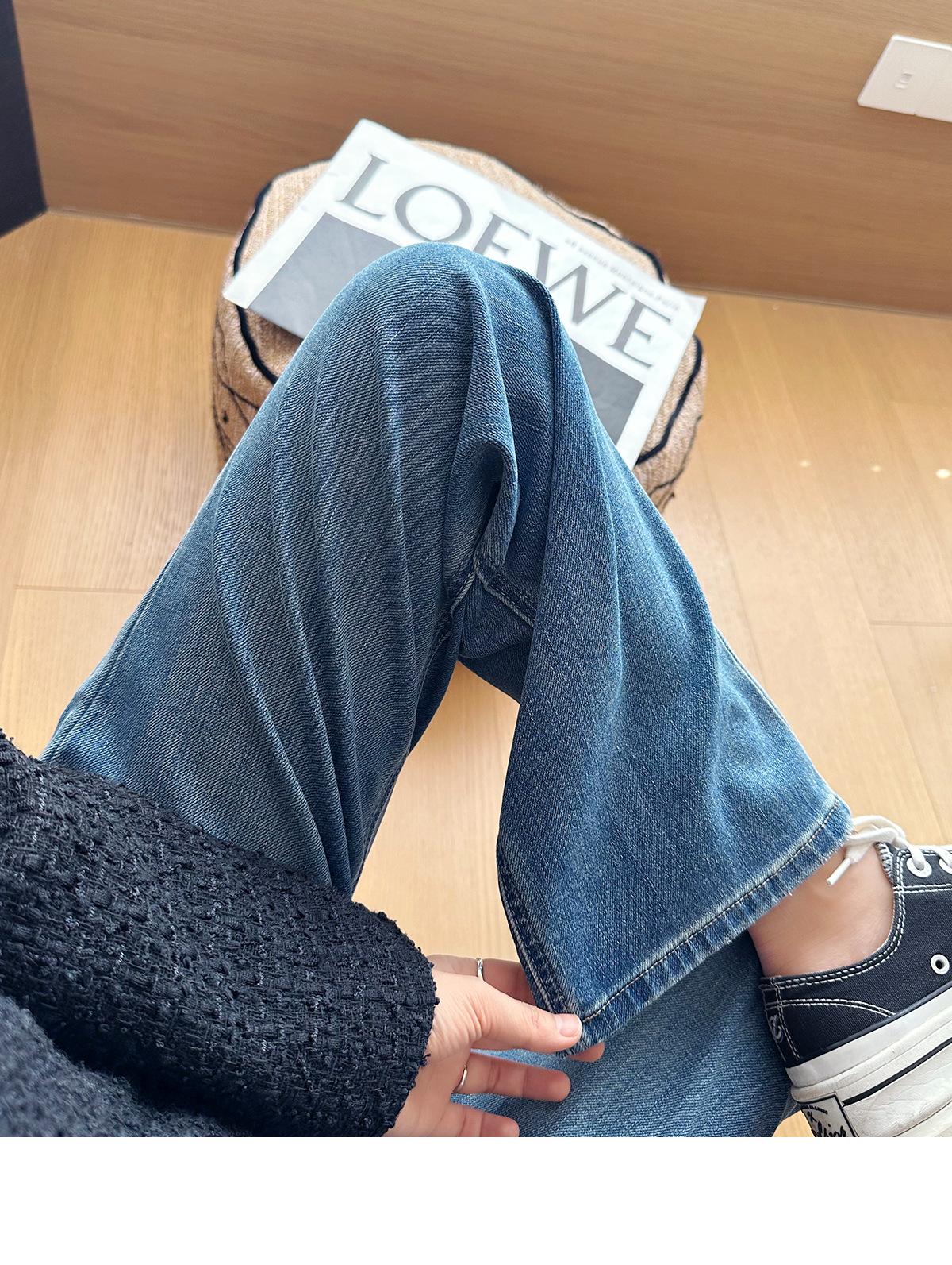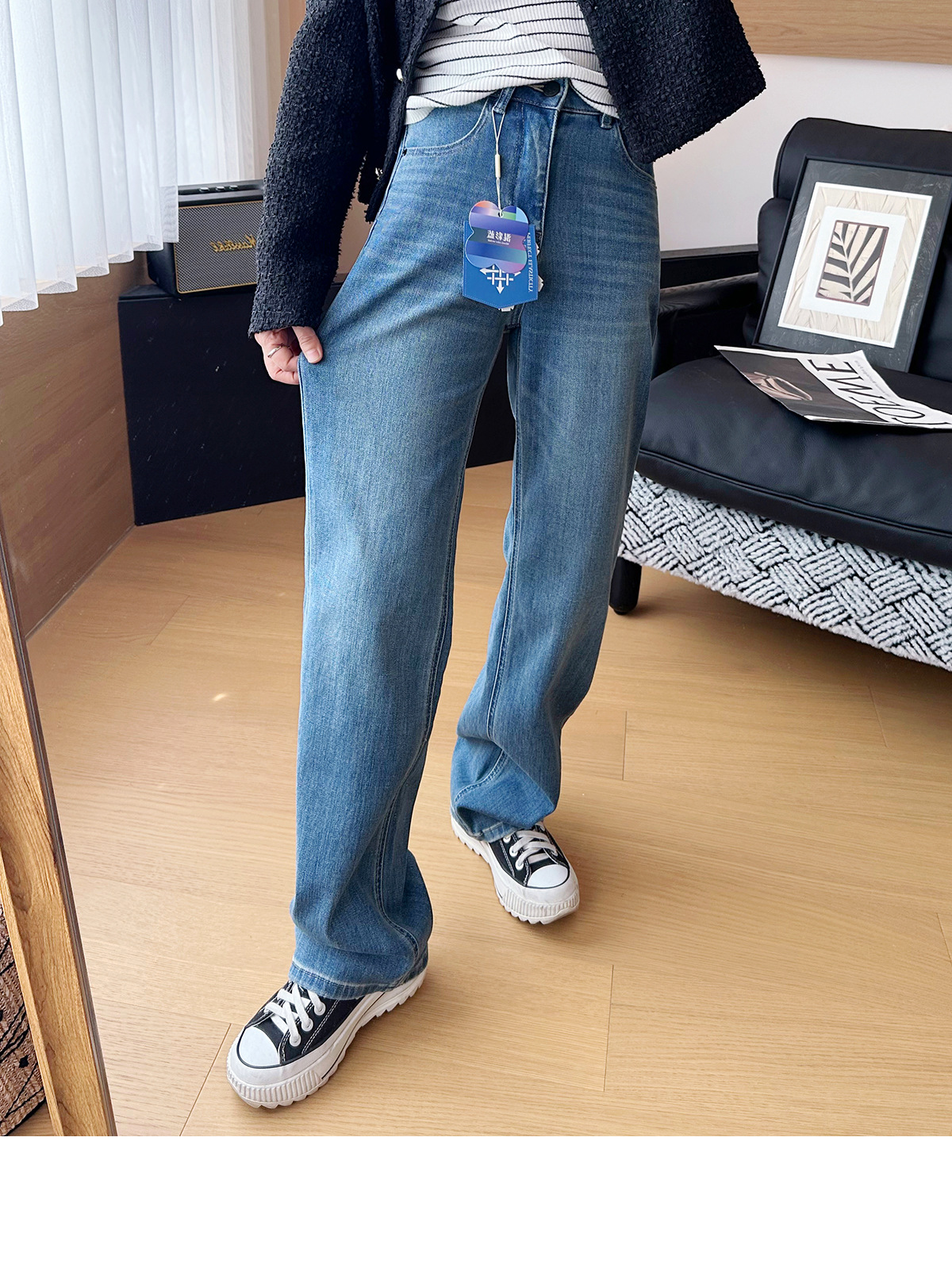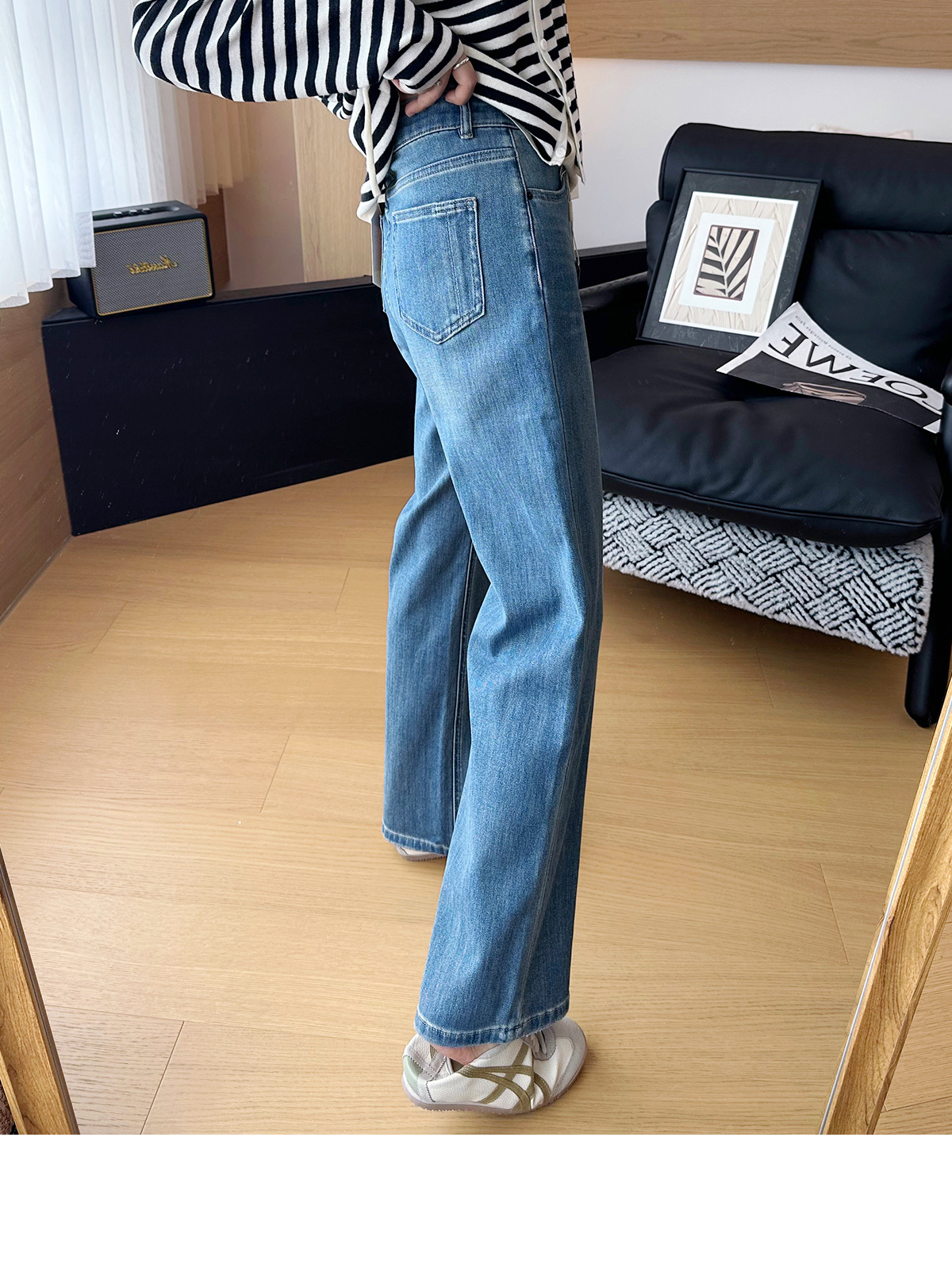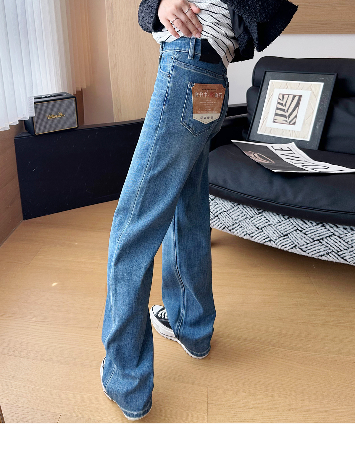 C 비트 데님 ~ 두 길이! 텐셀 아세트산 4 면 탄성 와이드 레그 바지 여성용 슬리밍 펜던트 좁은 길이의 스트레이트 레그 바지스토어 가기