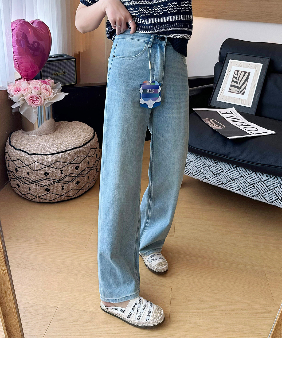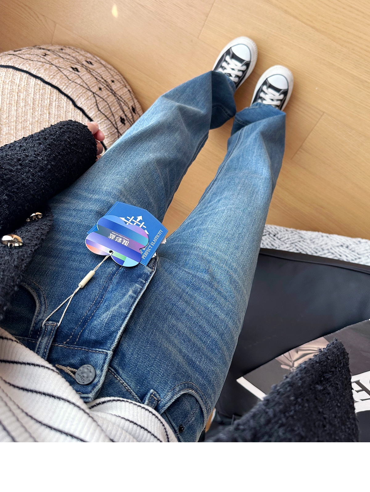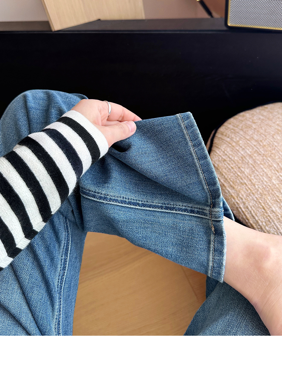 C 비트 데님 ~ 두 길이! 텐셀 아세트산 4 면 탄성 와이드 레그 바지 여성용 슬리밍 펜던트 좁은 길이의 스트레이트 레그 바지스토어 가기