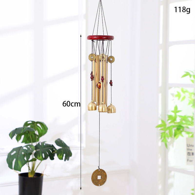 대외 무역 뜨거운 판매 복고풍 구리 돈 바람 차임 공예 펜던트 단단한 나무 알루미늄 튜브 매장 안뜰 장식 재고 도매