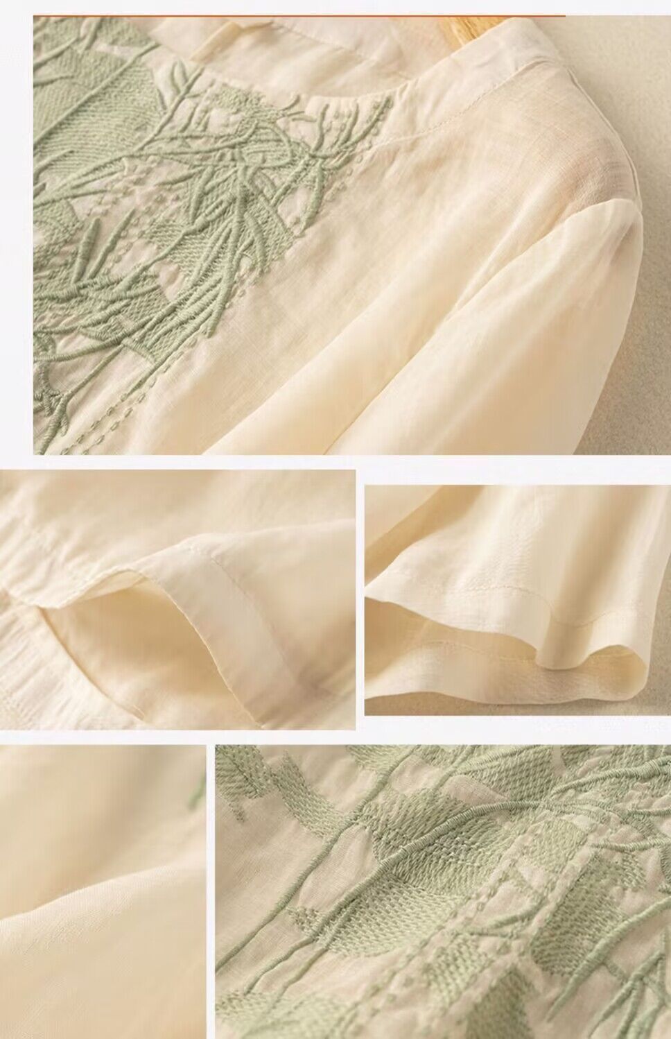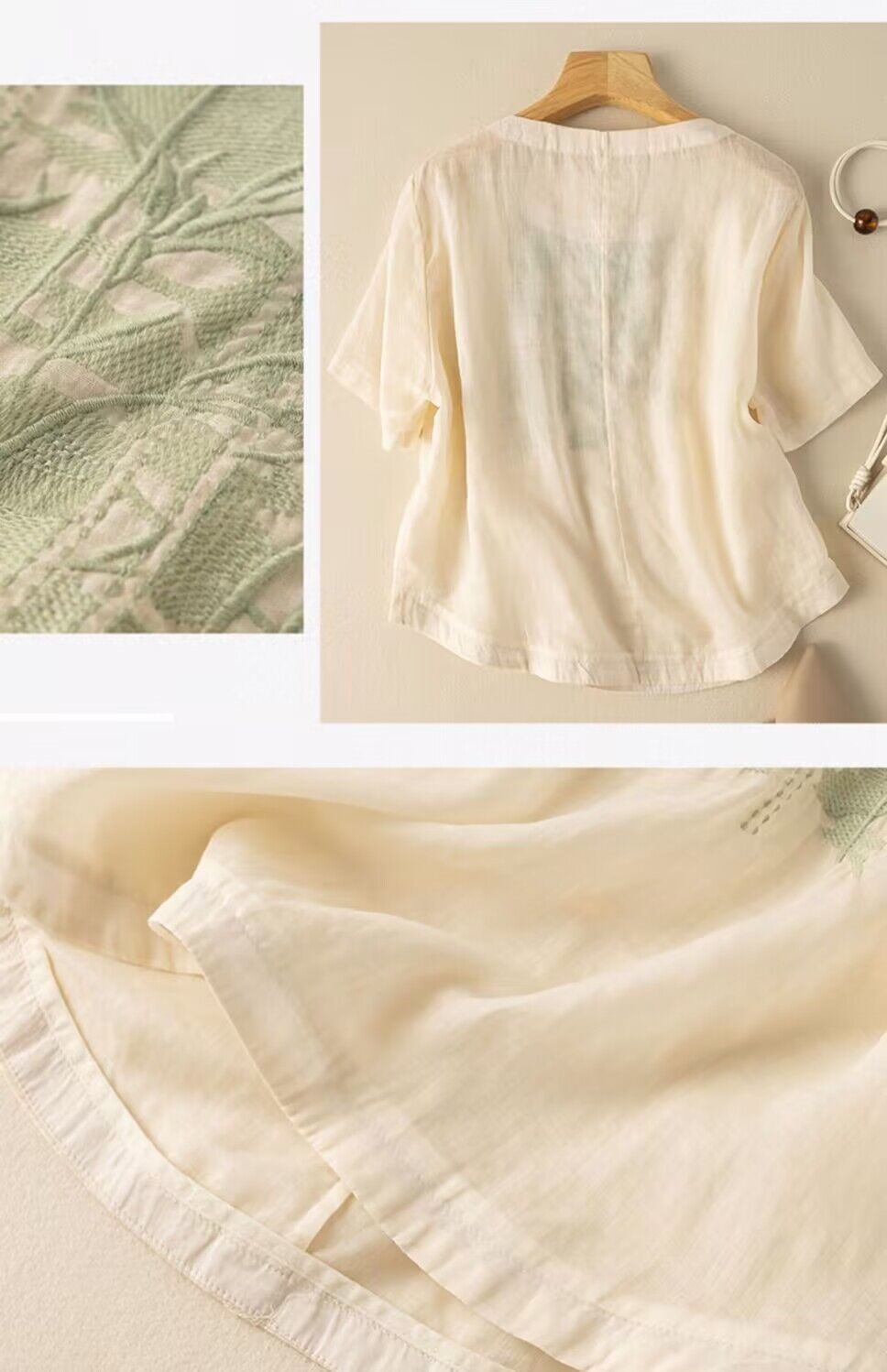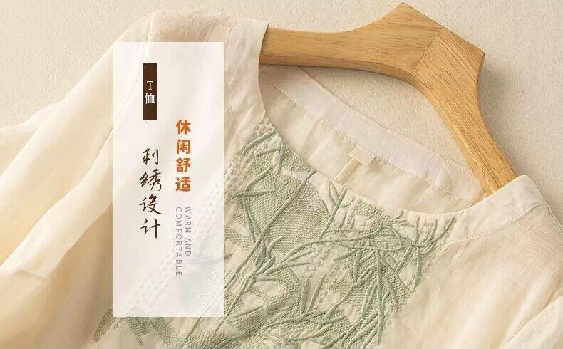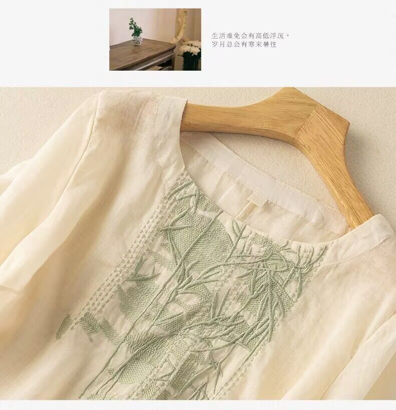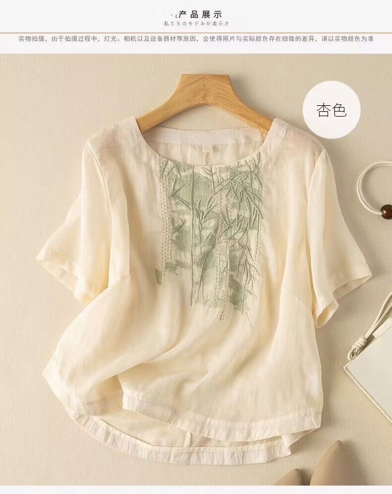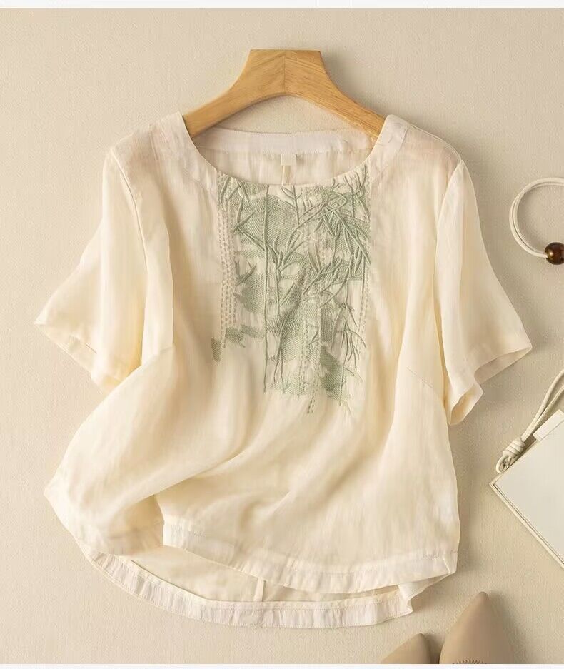 면 및 린넨 반팔 티셔츠 여성의 여름 2025 년 새로운 느슨한 나이-외국 스타일 어머니의 작은 셔츠 기질 교차 국경 감소