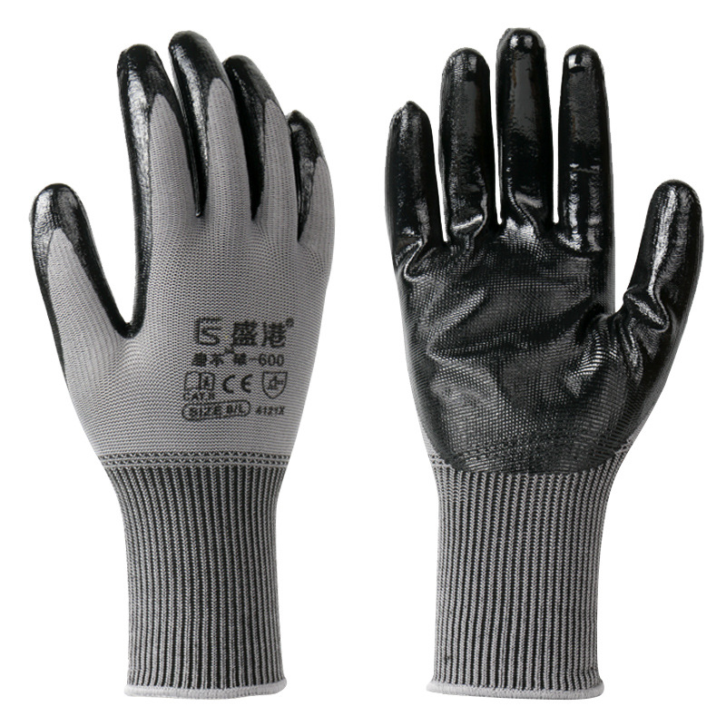 블랙 니트릴 고무 높은 스트레치 실크 13 핀 노동 보호 장갑 편안한 통기성 두꺼운 고무 딥 내마모성 장갑 작업 현장