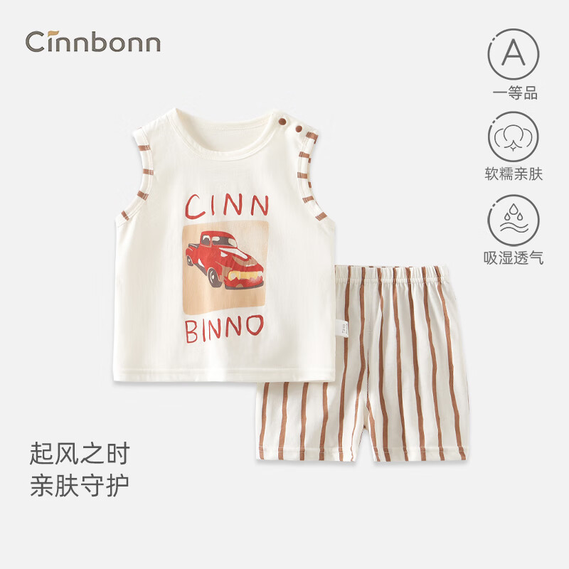 청바오 여름 새로운 세트 소년 얇은 조끼 반바지 2 피스 아기 코튼 옷 통기성 및 부드러운스토어 가기
