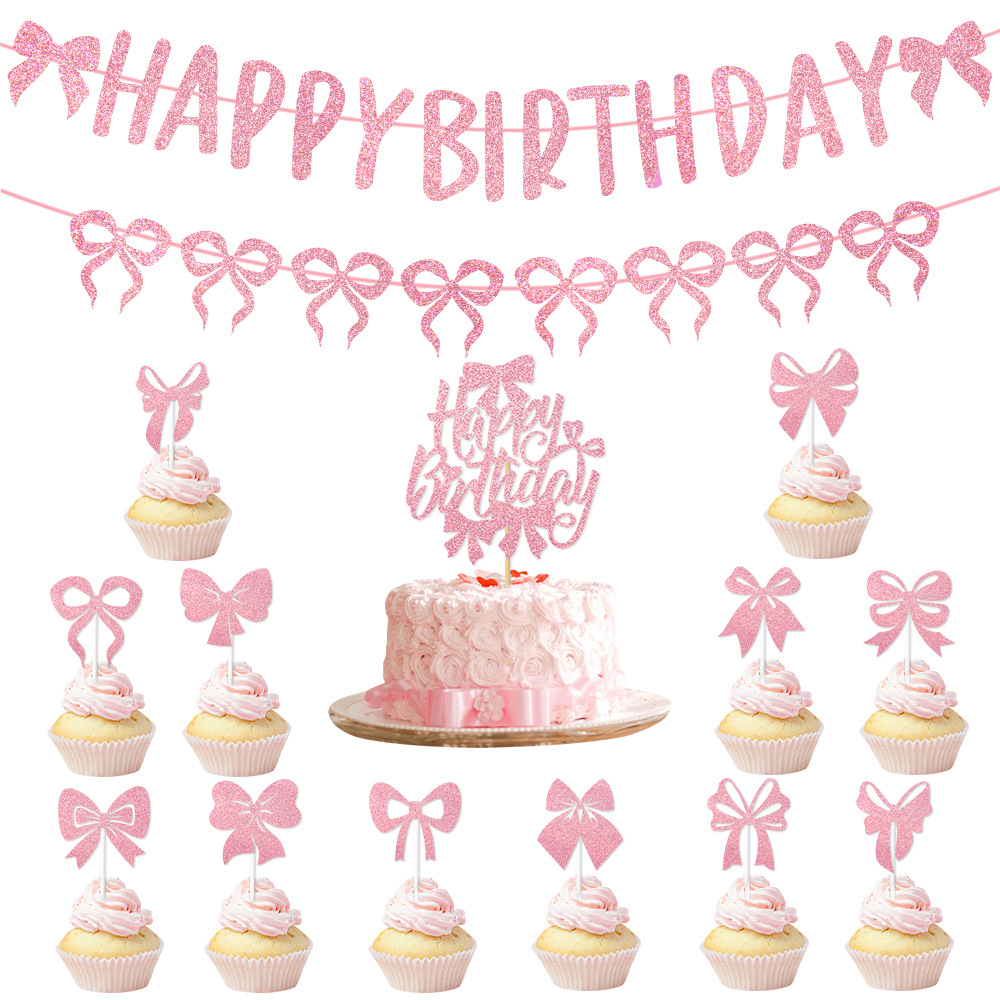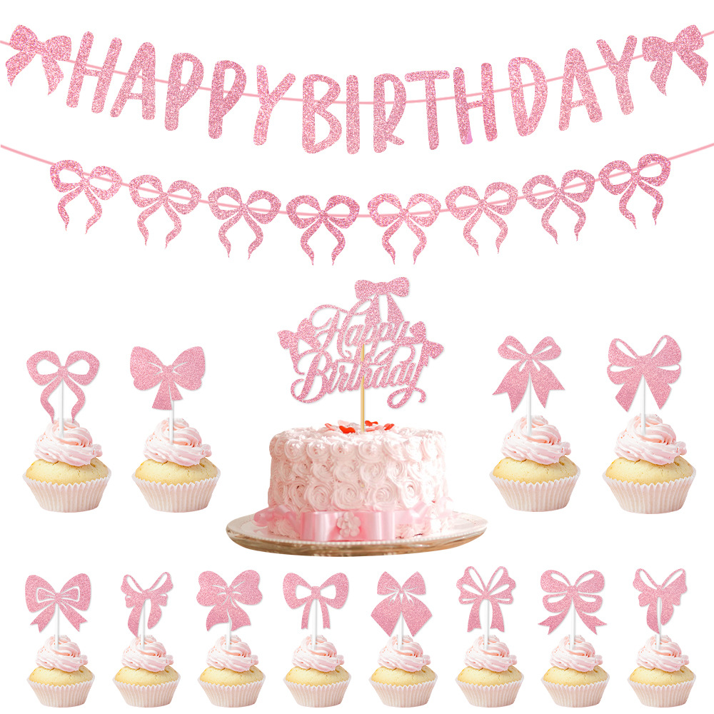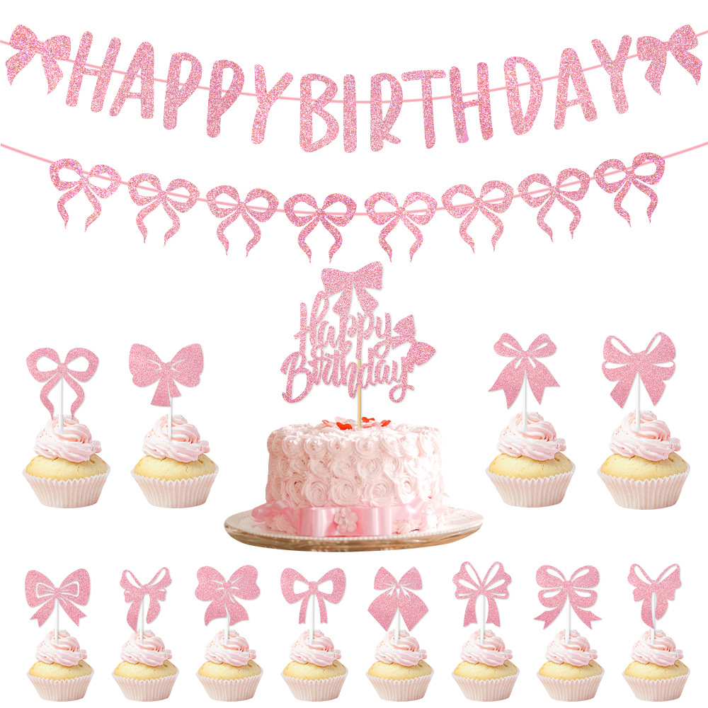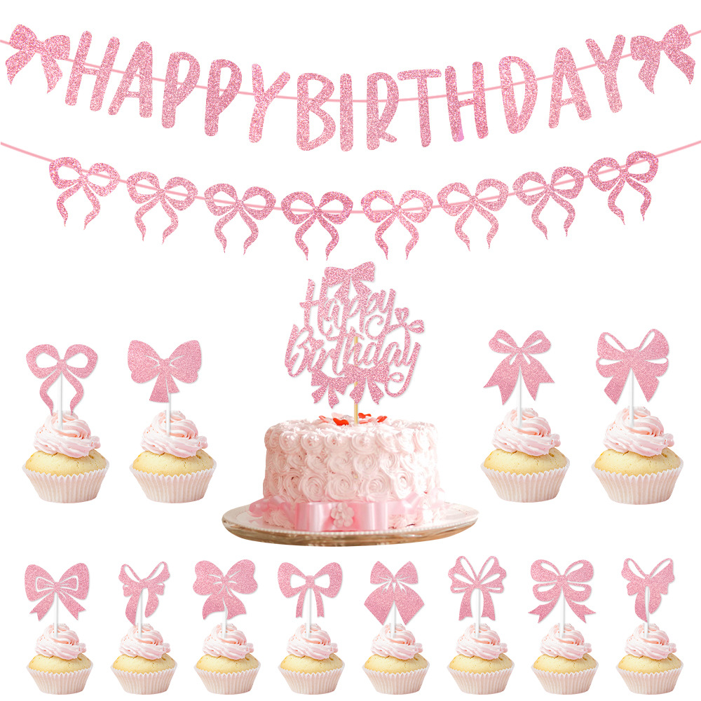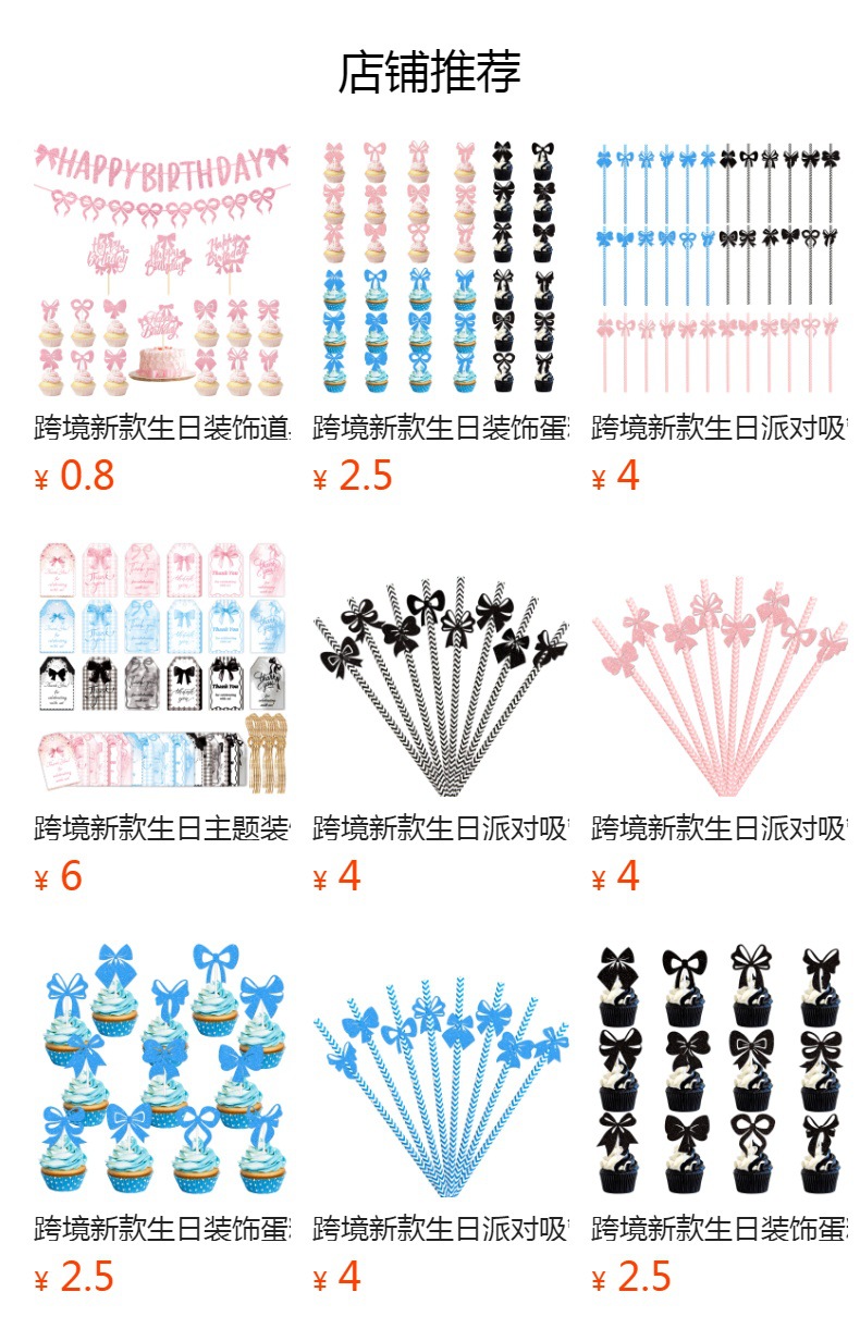 产品:跨境新款蝴蝶结蛋糕插旗派对用品