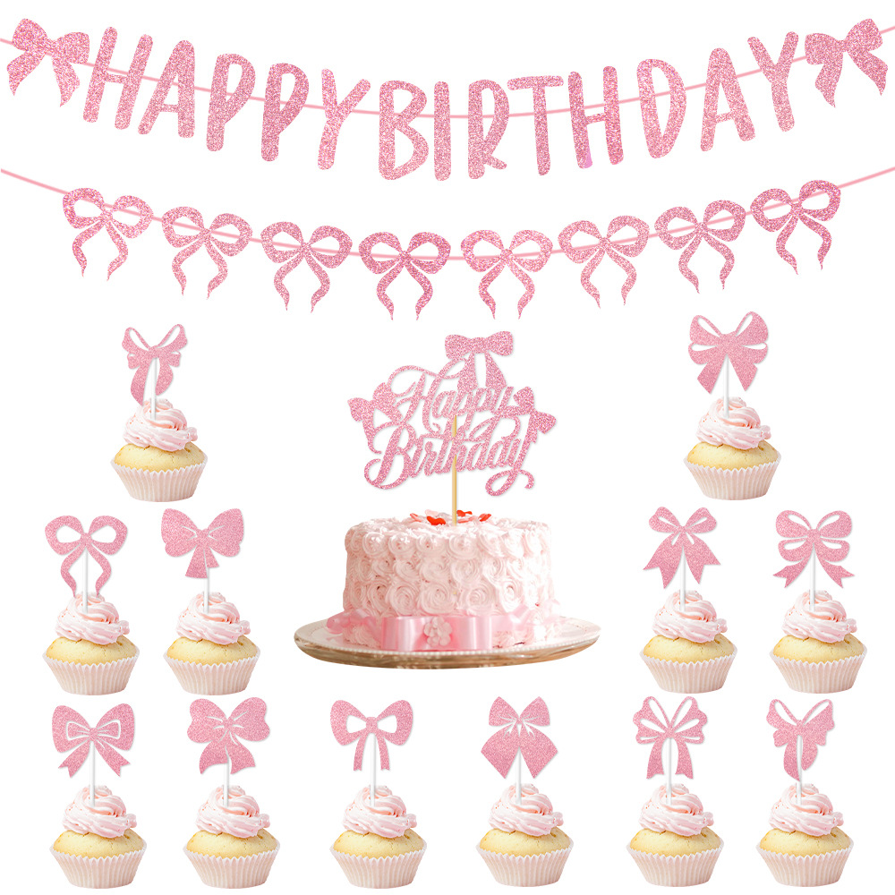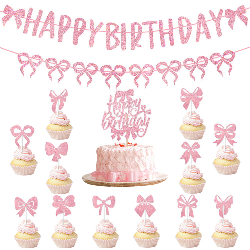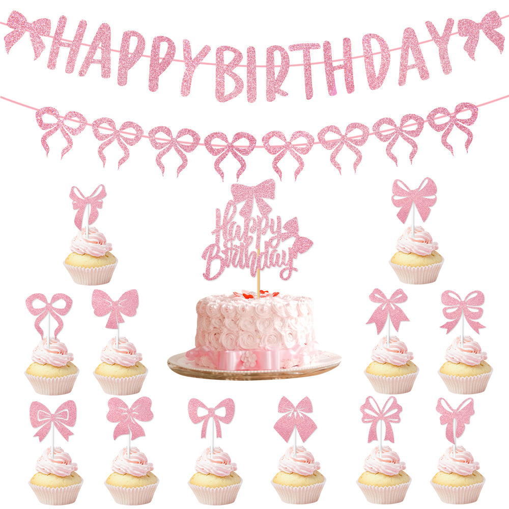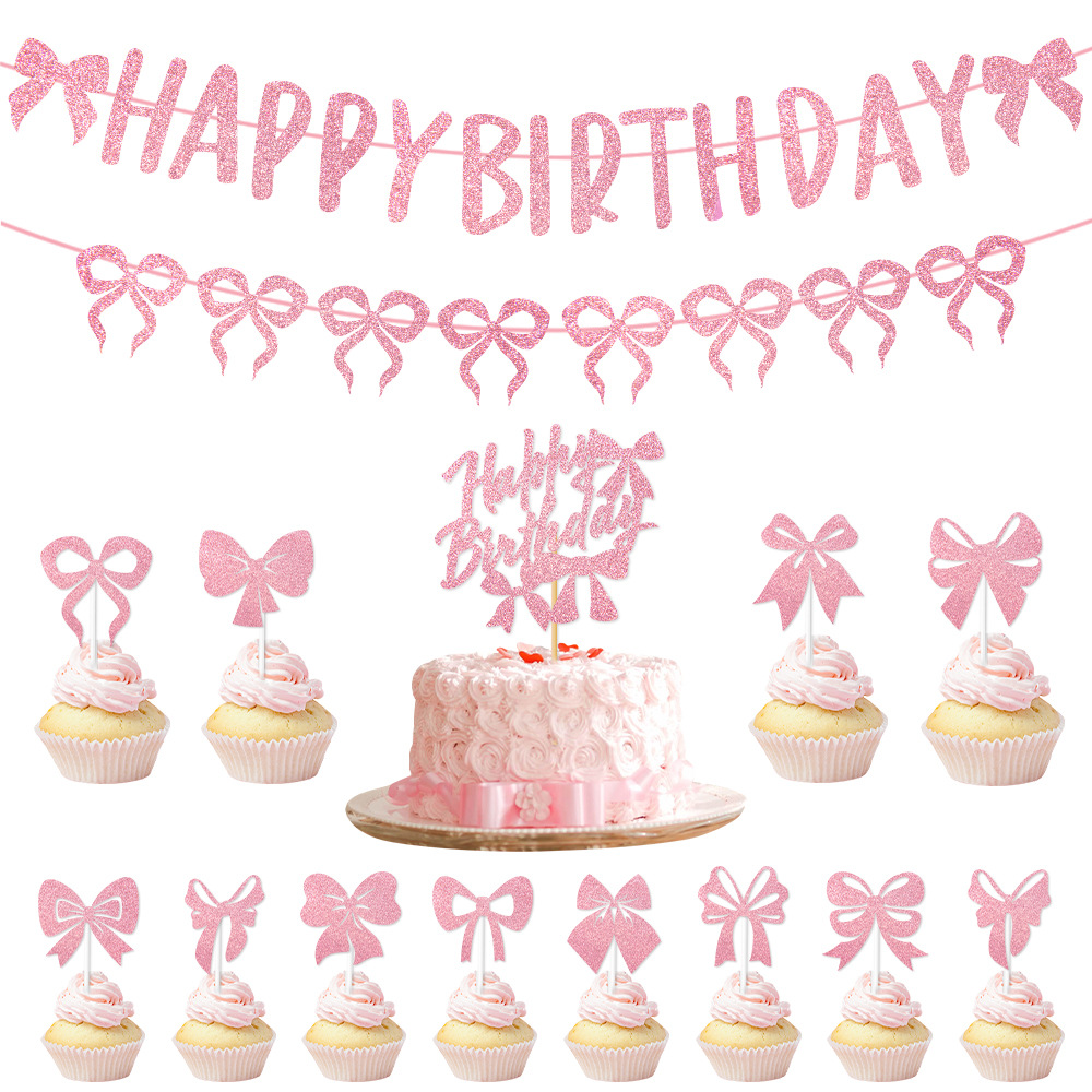 产品:跨境新款蝴蝶结蛋糕插旗派对用品