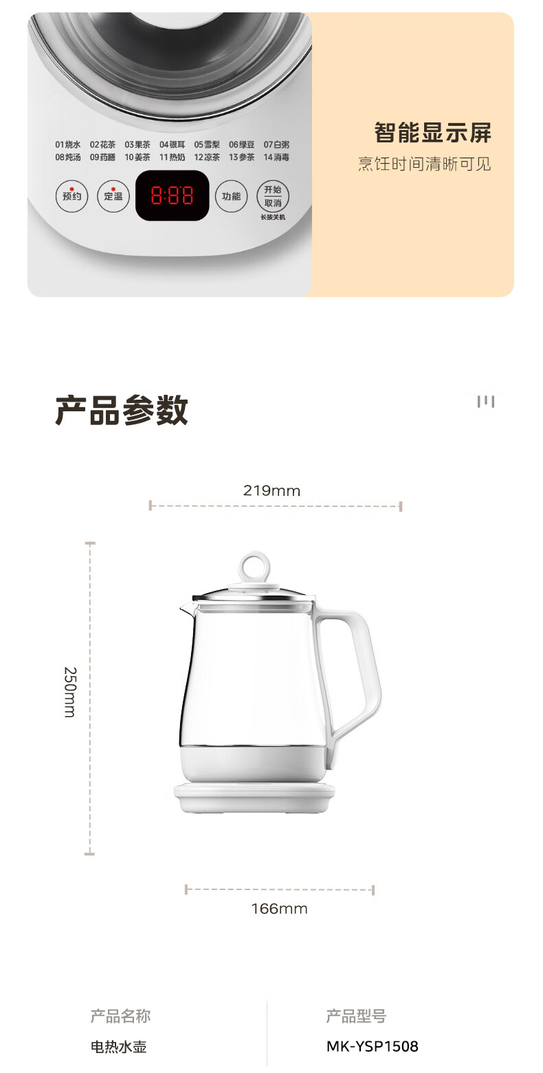 Midea MK-YSP1508 건강 포트 1.5L 주전자 24 시간 예약 주전자 316L 전기 주전자스토어 가기