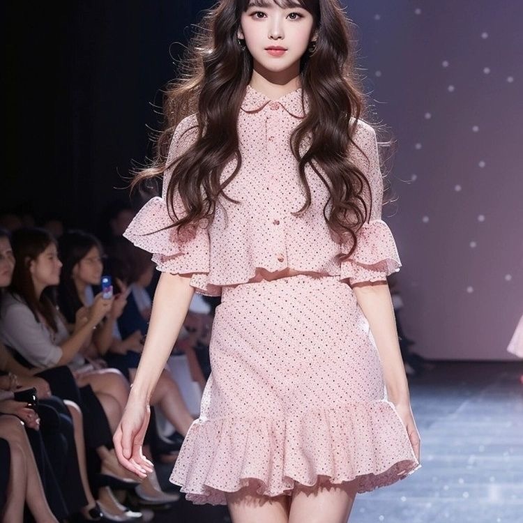 2025 여름 차 부서는 가벼운 럭셔리 하이 엔드 느낌 도파민 핑크 웨이브 도트 세트를 착용합니다.스토어 가기