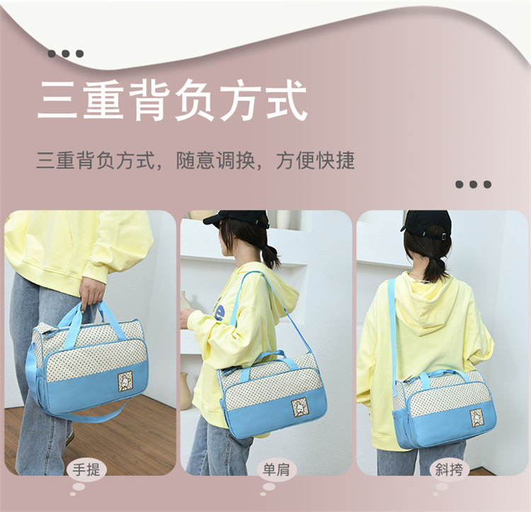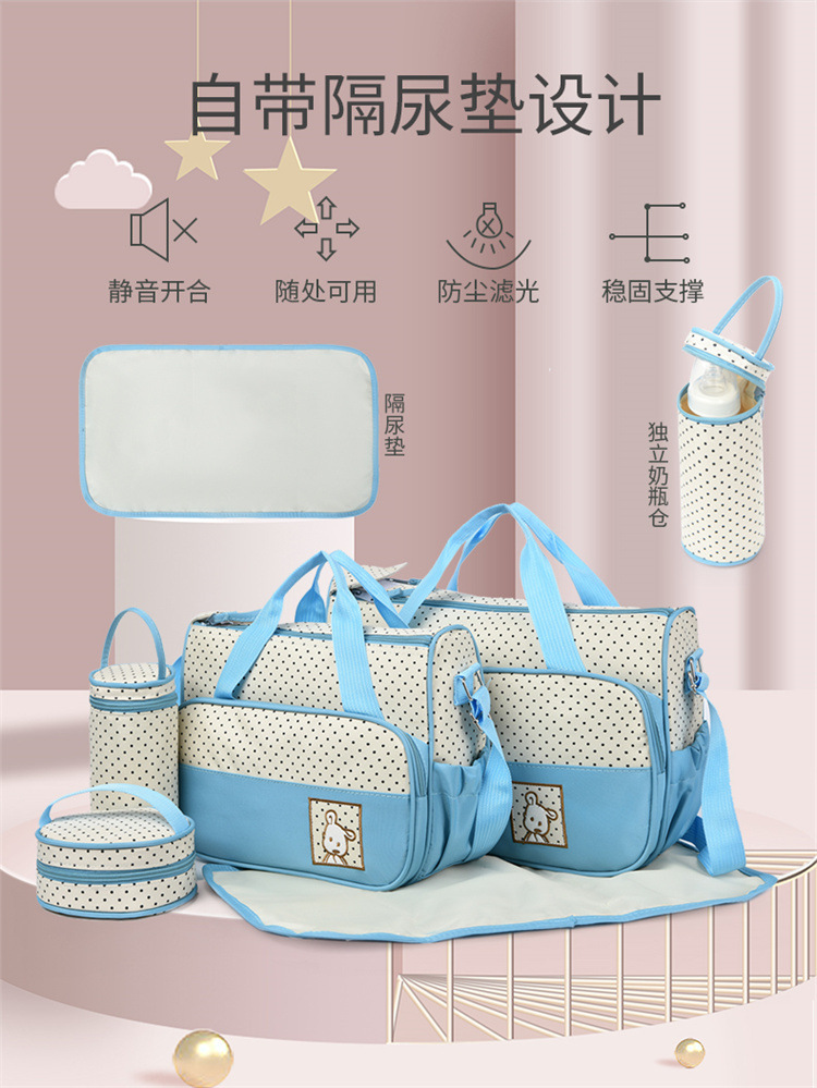 5 피스 세트 미라 가방 토트 백 웨이브 포인트 엄마와 아기 가방 우유 병 가방 배달 부모-자식 가방 대용량 기저귀 가방스토어 가기
