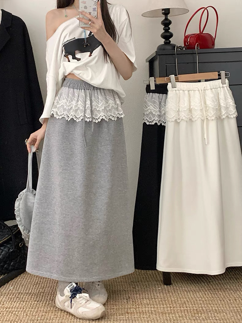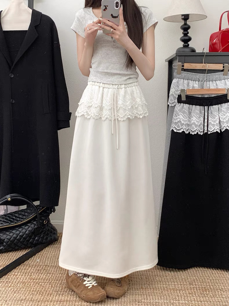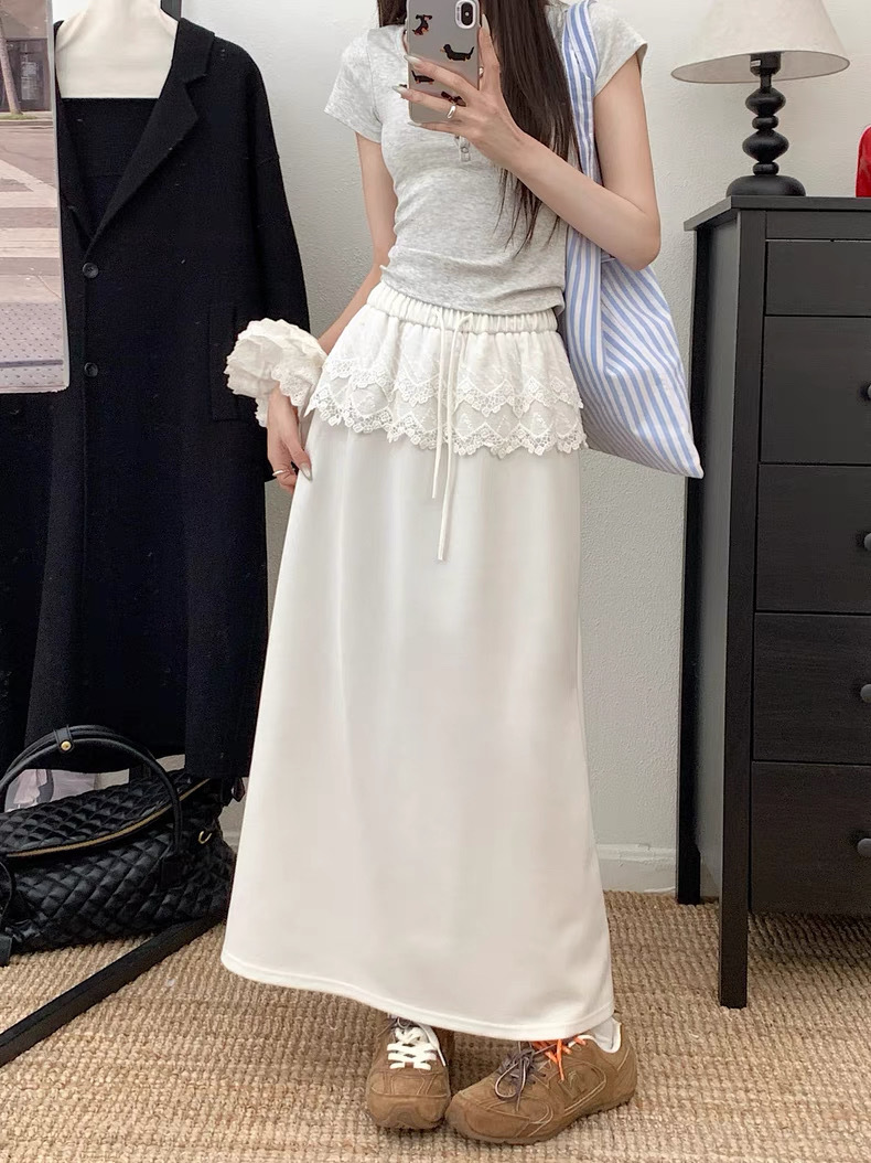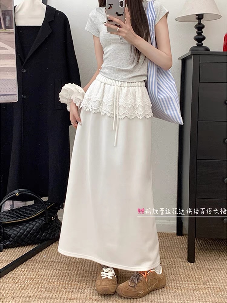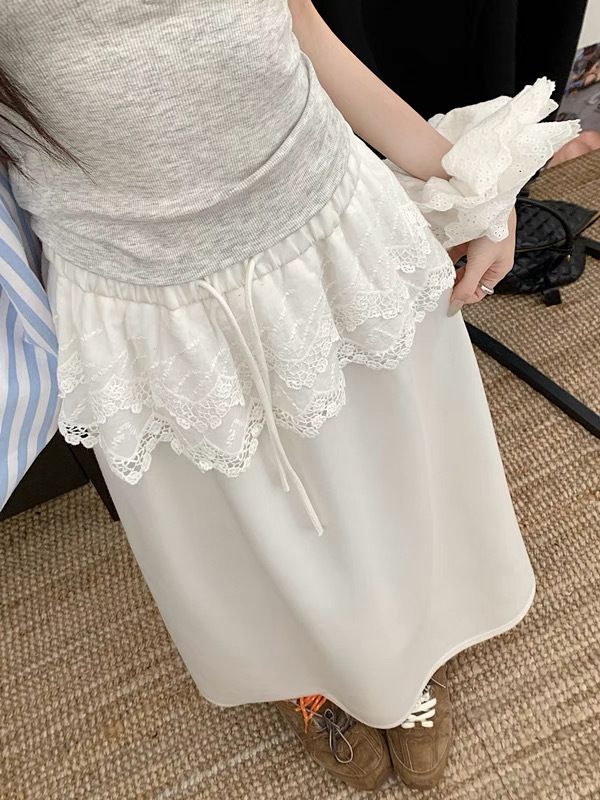 25 레이스 바느질 A 라인 스커트 여자 이른 봄 및 여름 얇은 새 한국 스타일 게으른 캐주얼 올 매치 스커트