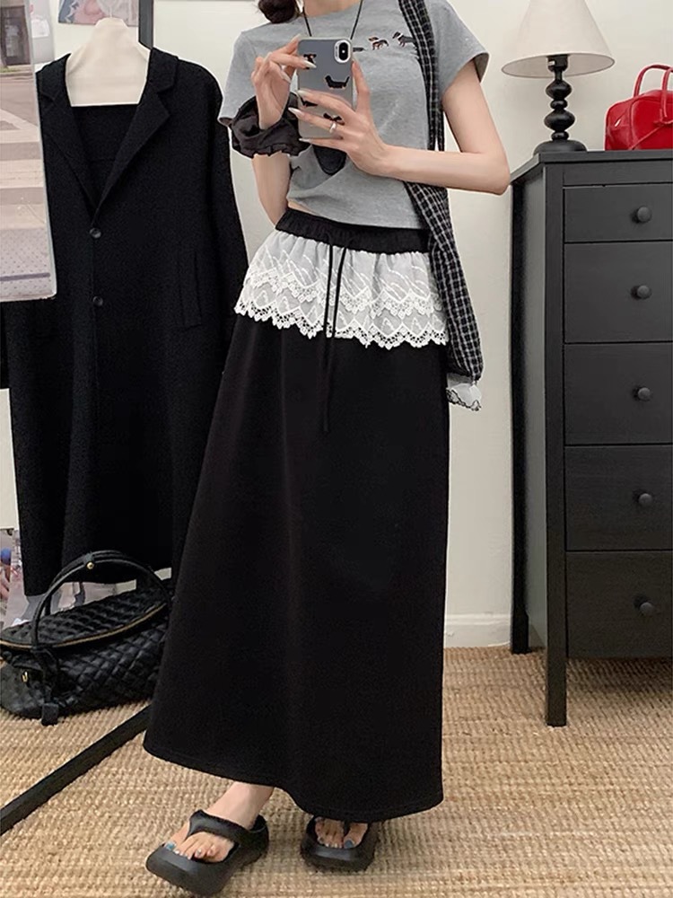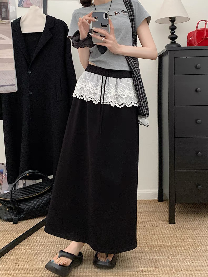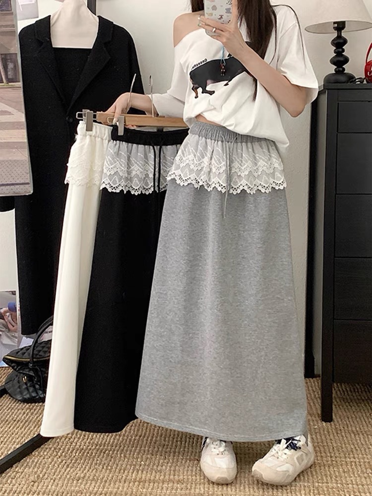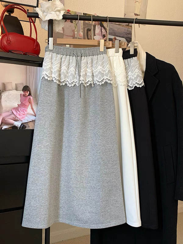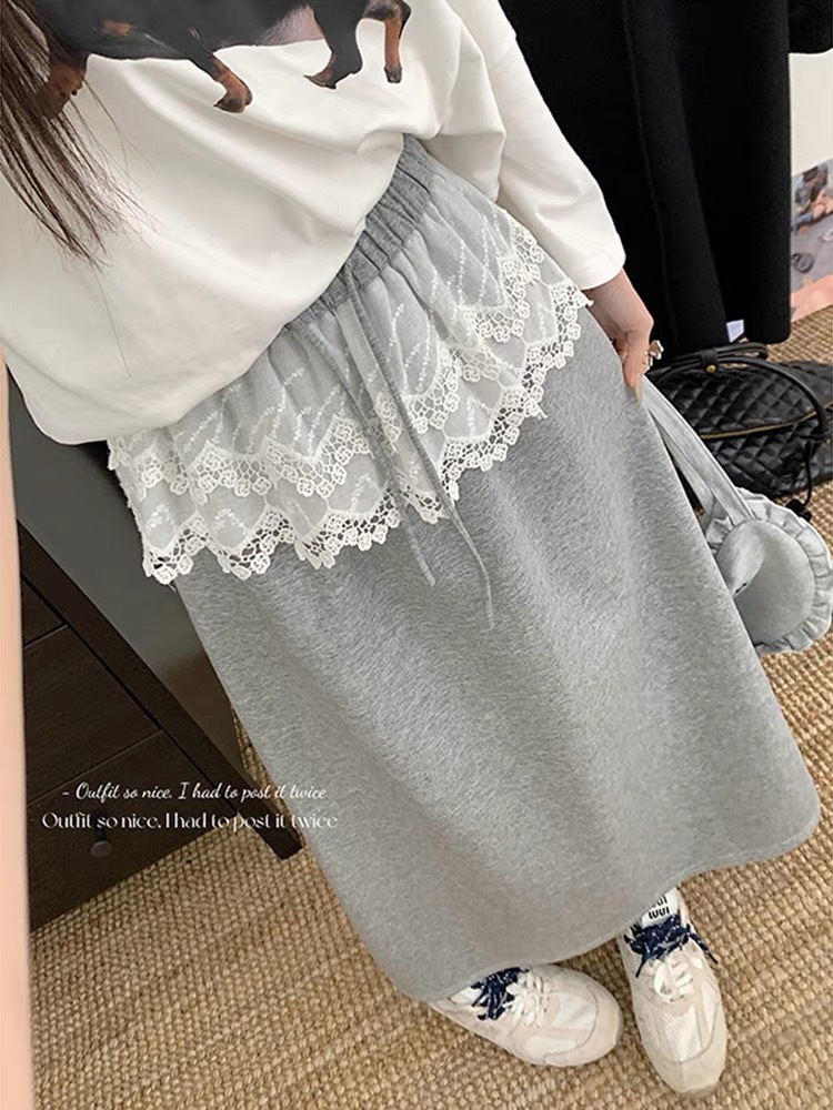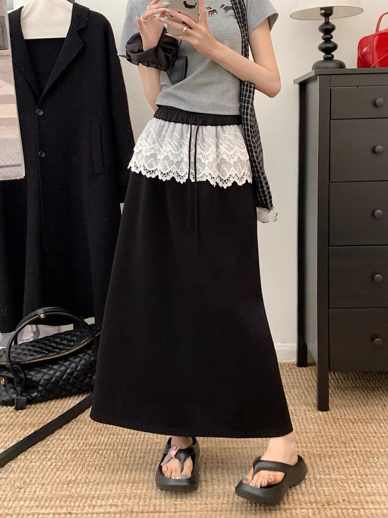 25 레이스 바느질 A 라인 스커트 여자 이른 봄 및 여름 얇은 새 한국 스타일 게으른 캐주얼 올 매치 스커트