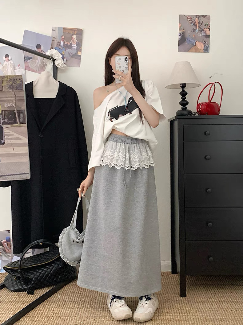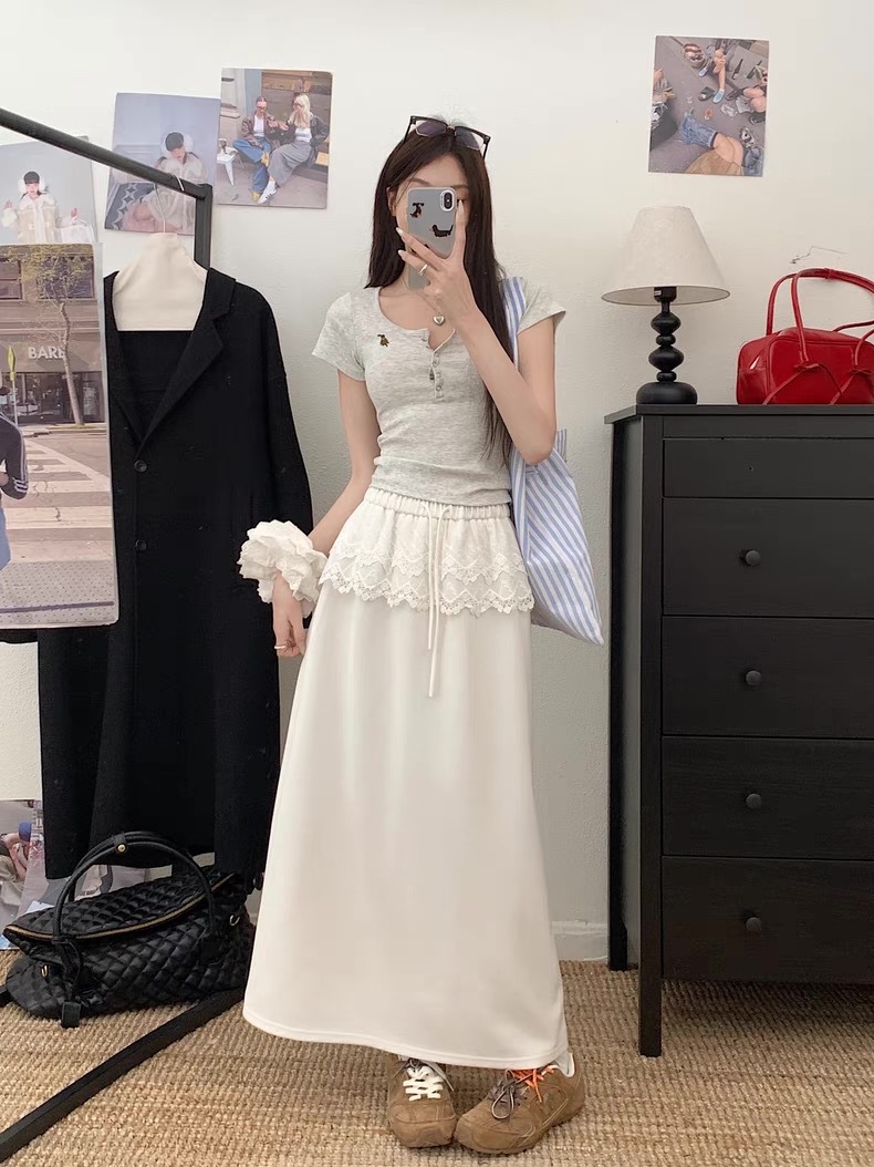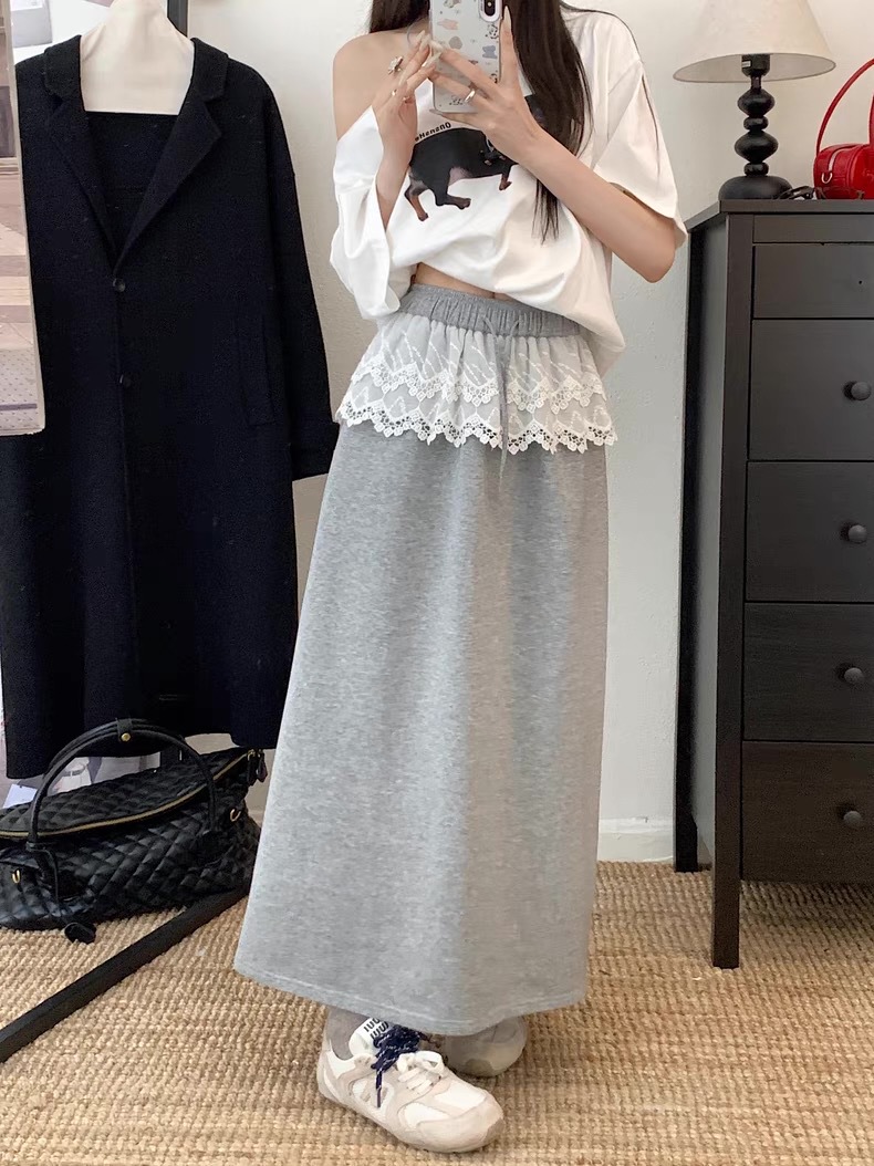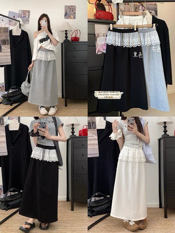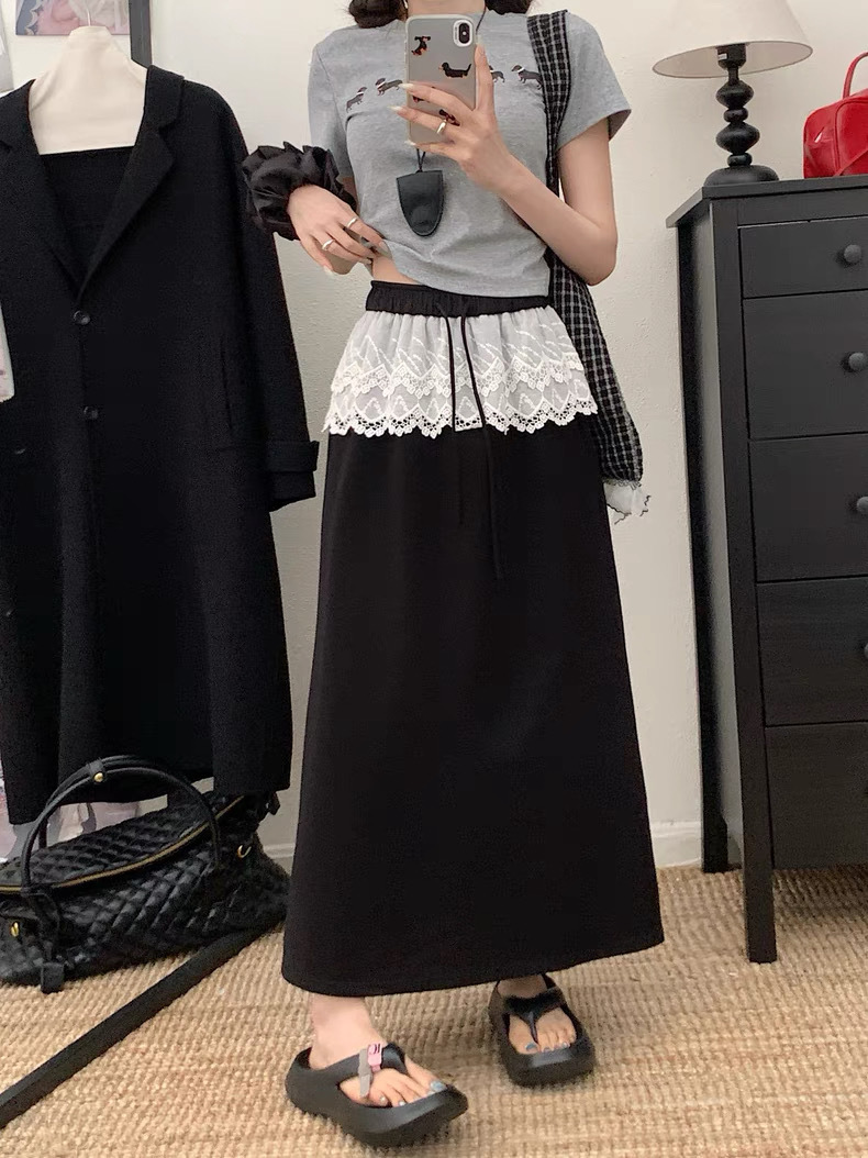 25 레이스 바느질 A 라인 스커트 여자 이른 봄 및 여름 얇은 새 한국 스타일 게으른 캐주얼 올 매치 스커트스토어 가기
