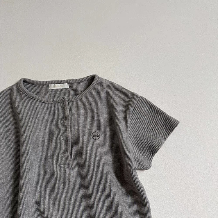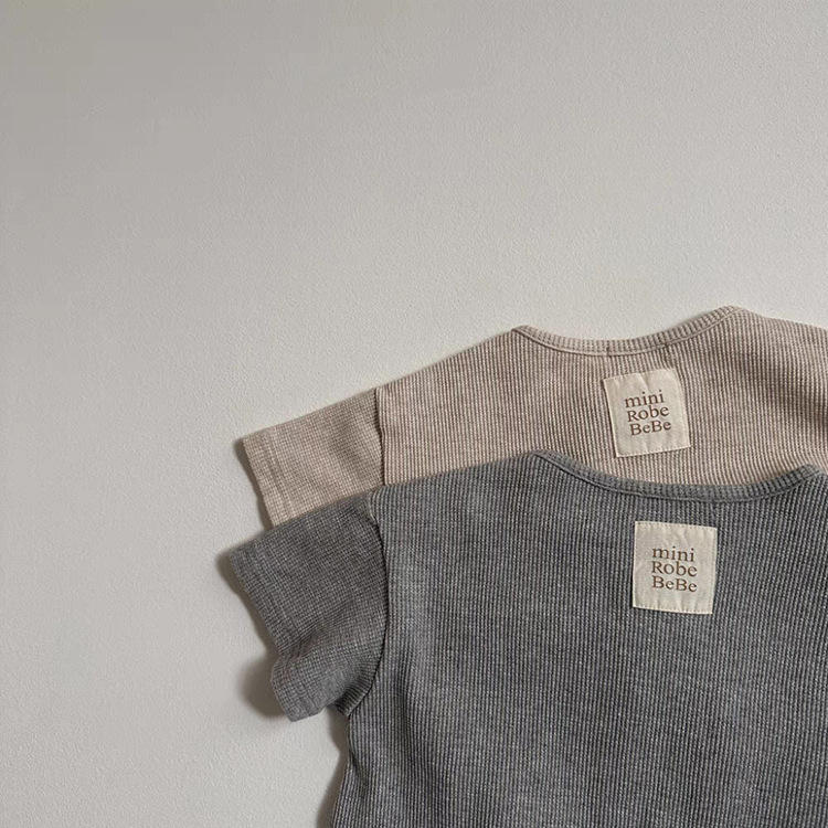 한국식 Ins 간단한 라운드 넥 반팔 짧은 등반 핏 스트립 코튼 뉴 스타일 결합 된 남녀 솔리드 컬러 클라이밍 세트 봄과 여름스토어 가기