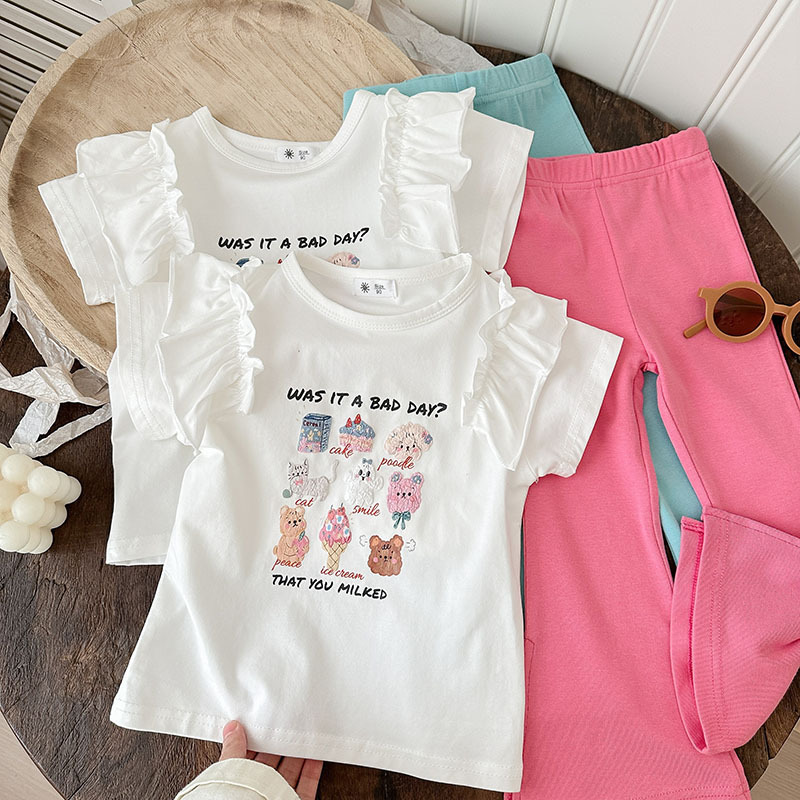 소녀 귀여운 세트 여름 서양식 슬링 러플 셔츠 바지 2025 여름 어린이 패션스토어 가기
