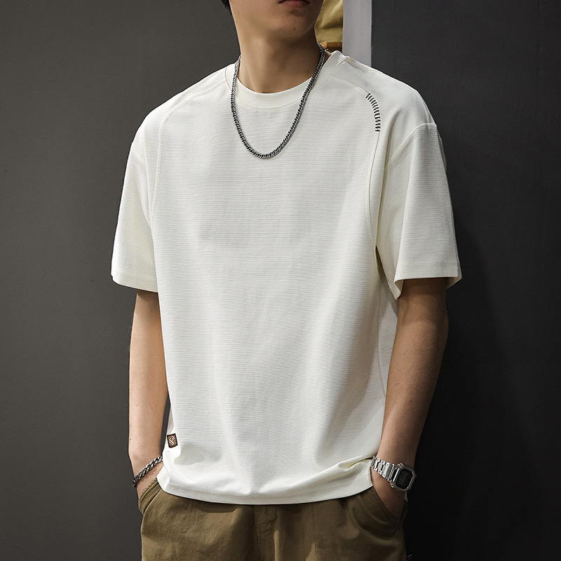 2025 새로운 미국 헤비 심플 반팔 티셔츠 남성 가을 느슨한 플러스 사이즈 패션 브랜드 질감 반팔 티셔츠스토어 가기