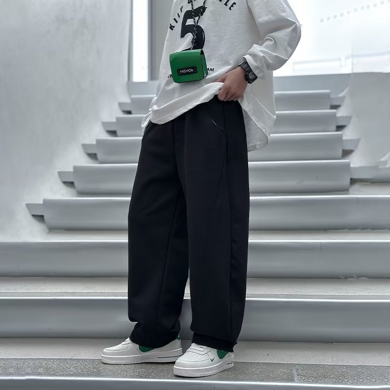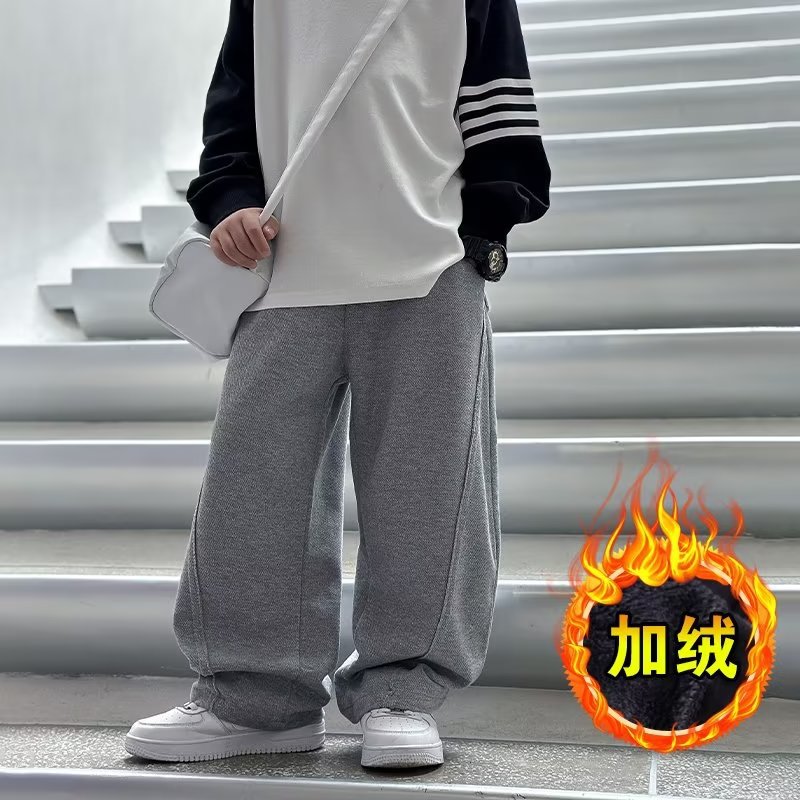 소년 바지 가을과 겨울 2025 새로운 대형 어린이 스트레이트 바지 느슨한 기모 넓은 다리 캐주얼 바지 도매스토어 가기