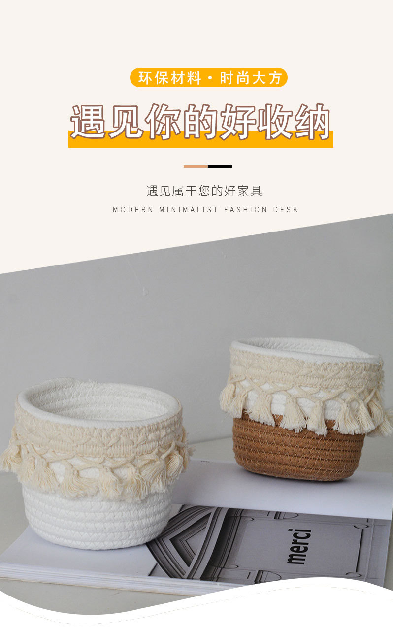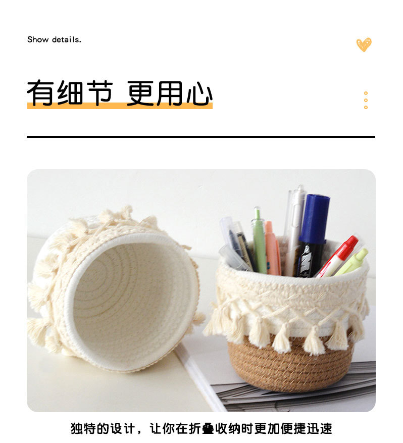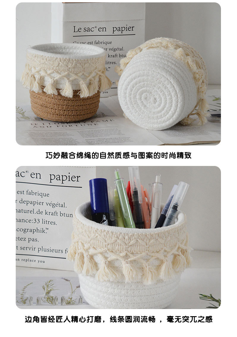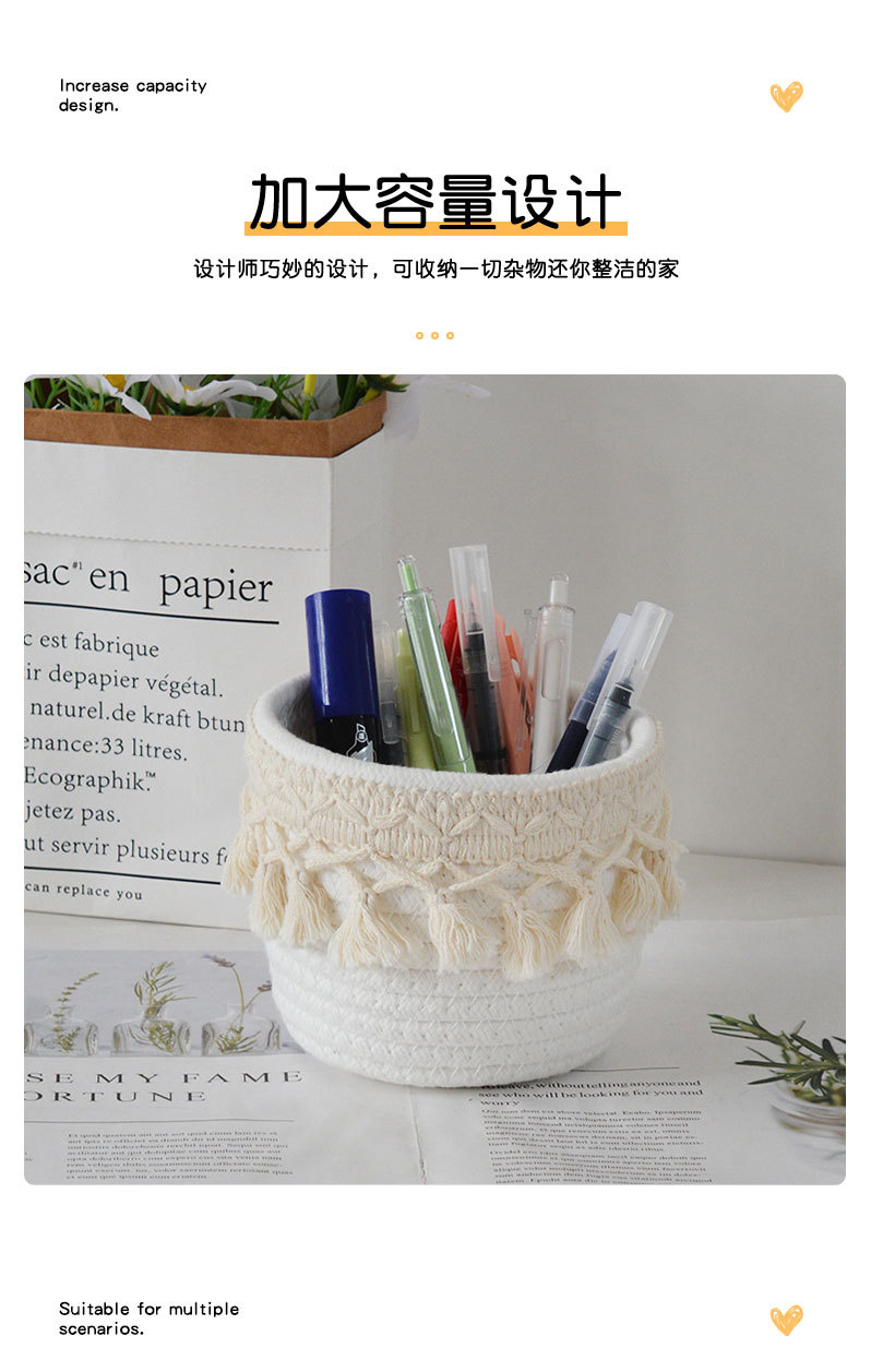 인면 로프 짠 저장 바구니 책상 학습 도구 저장 상자 화장품 펜 저장 버킷 데스크탑 잡화 마무리스토어 가기