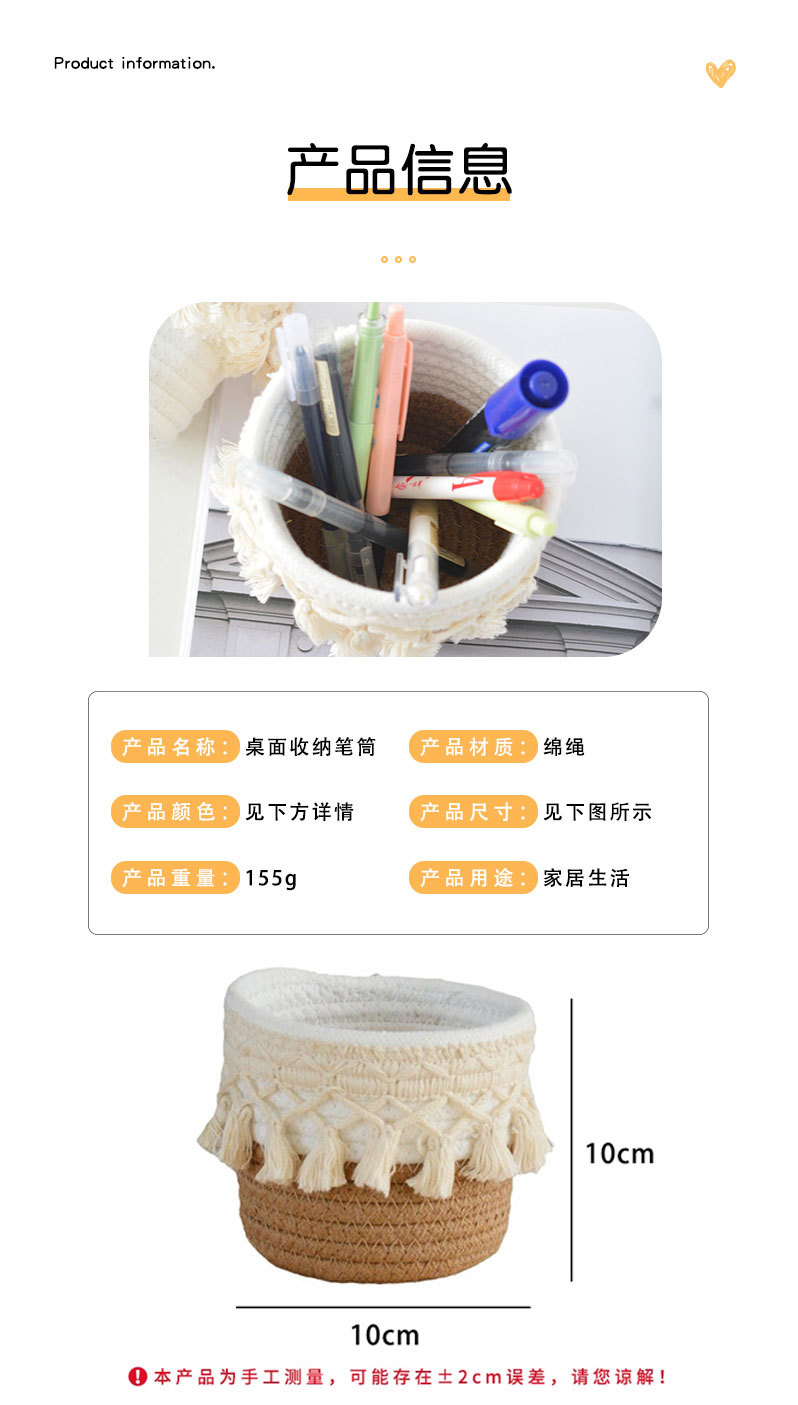 인면 로프 짠 저장 바구니 책상 학습 도구 저장 상자 화장품 펜 저장 버킷 데스크탑 잡화 마무리