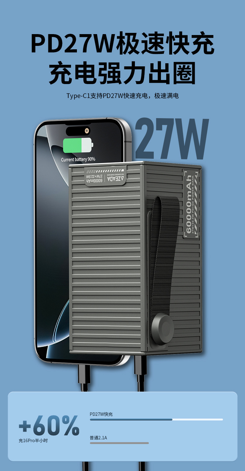 AZEADA 컨테이너 창조적 인 디자인 충전 보물 27W 야외 LED 빛 60000 mA 빠른 충전 모바일 전원 공급 장치스토어 가기