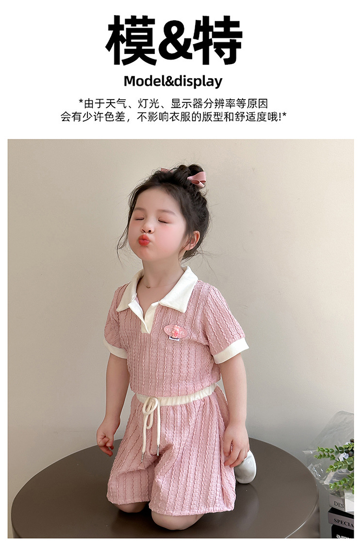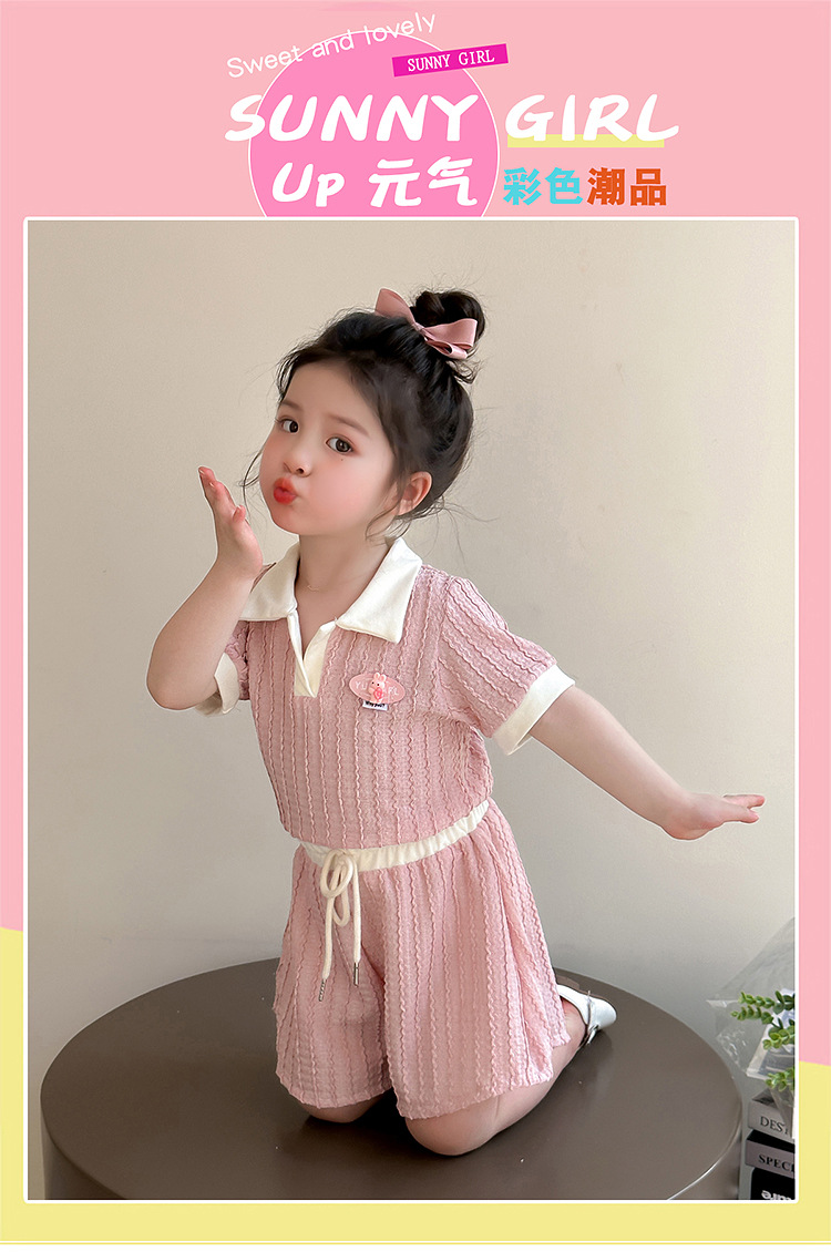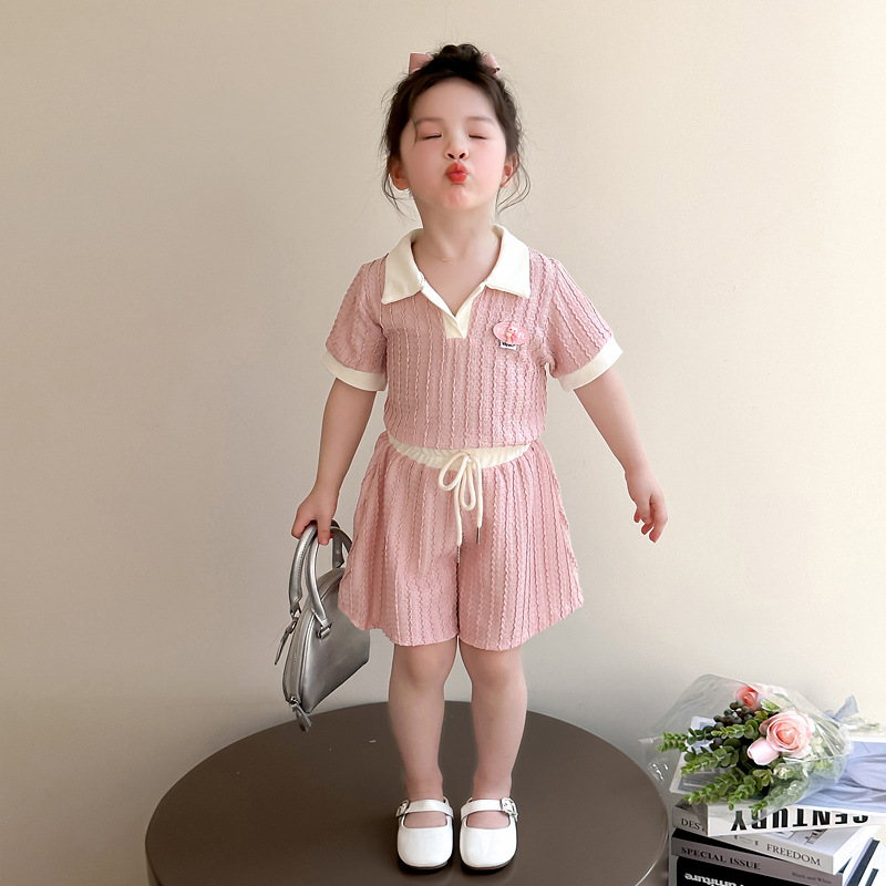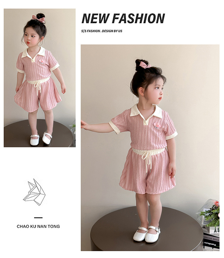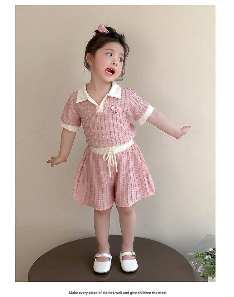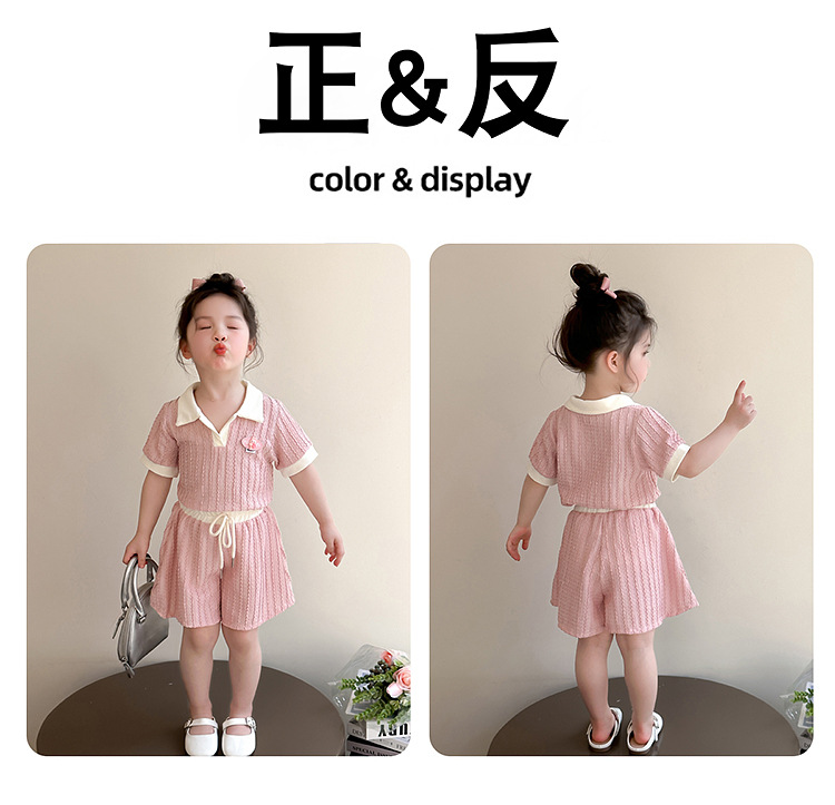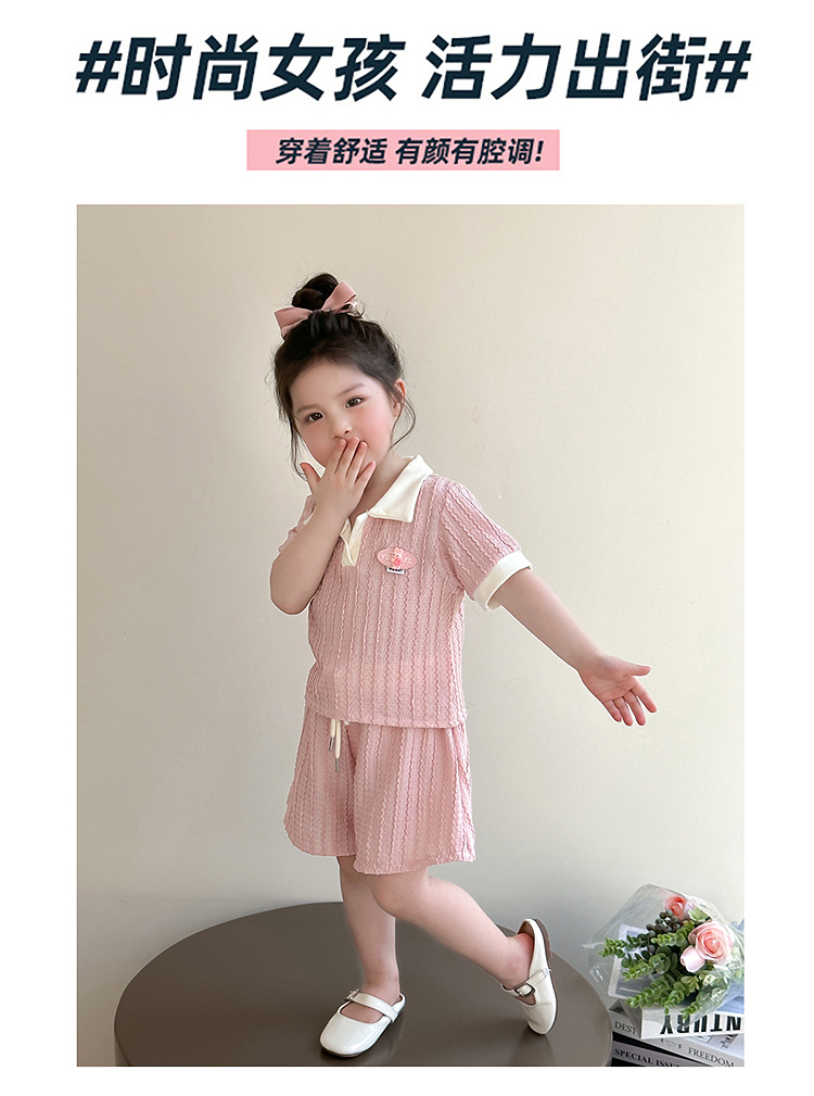 소녀 자카드 캐주얼 세트 2025 여름 새로운 패션 소녀의 서양 스타일 폴로 칼라 짧은 소매 투피스 세트스토어 가기