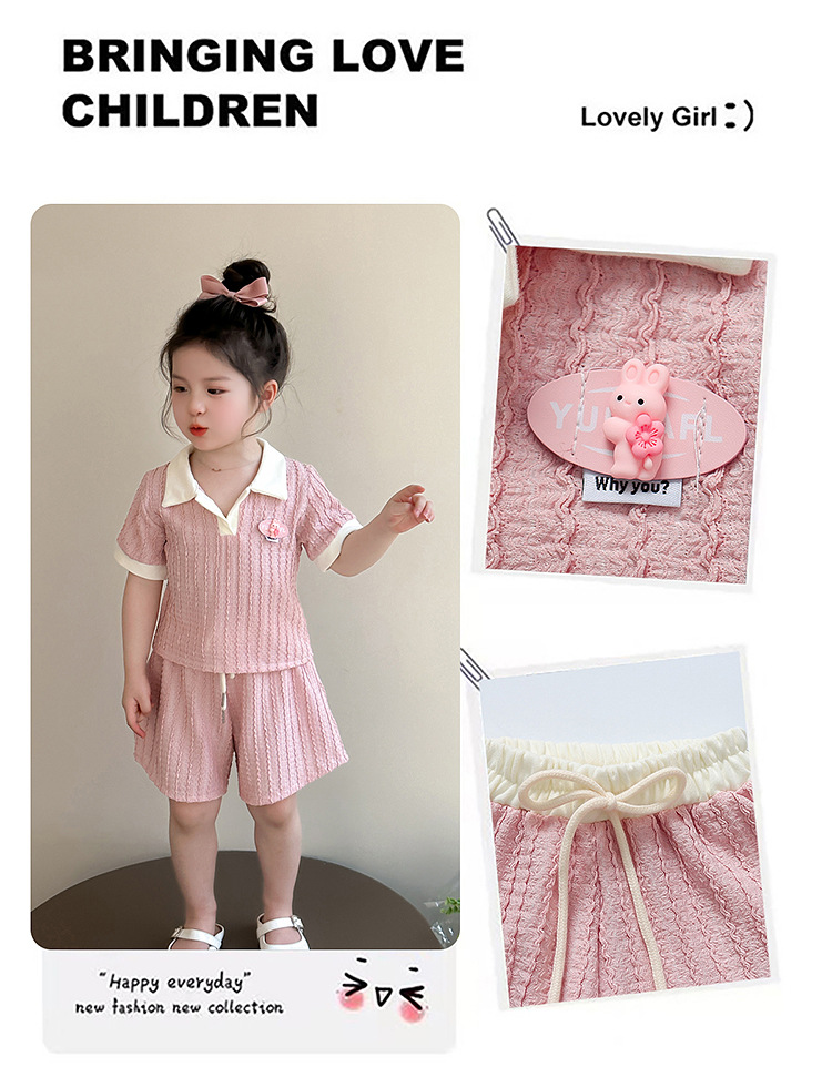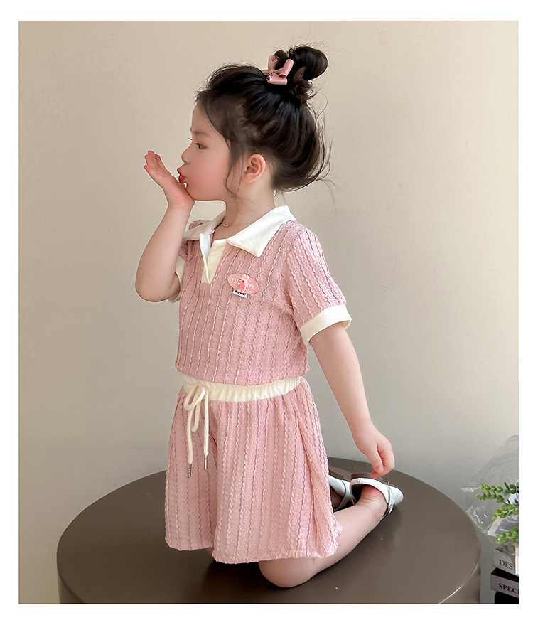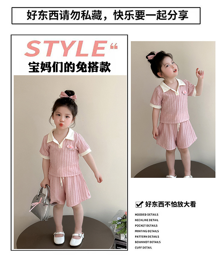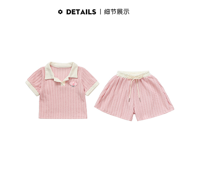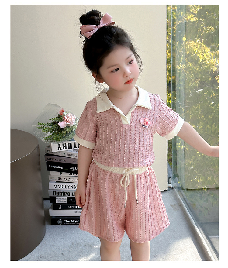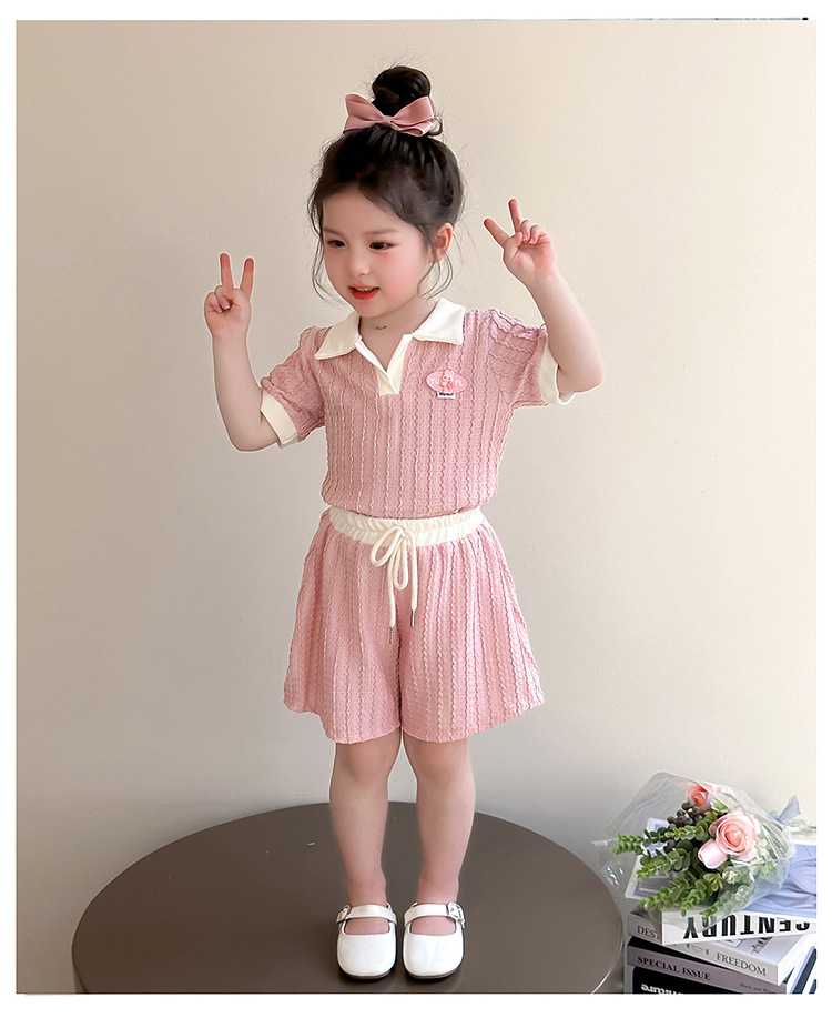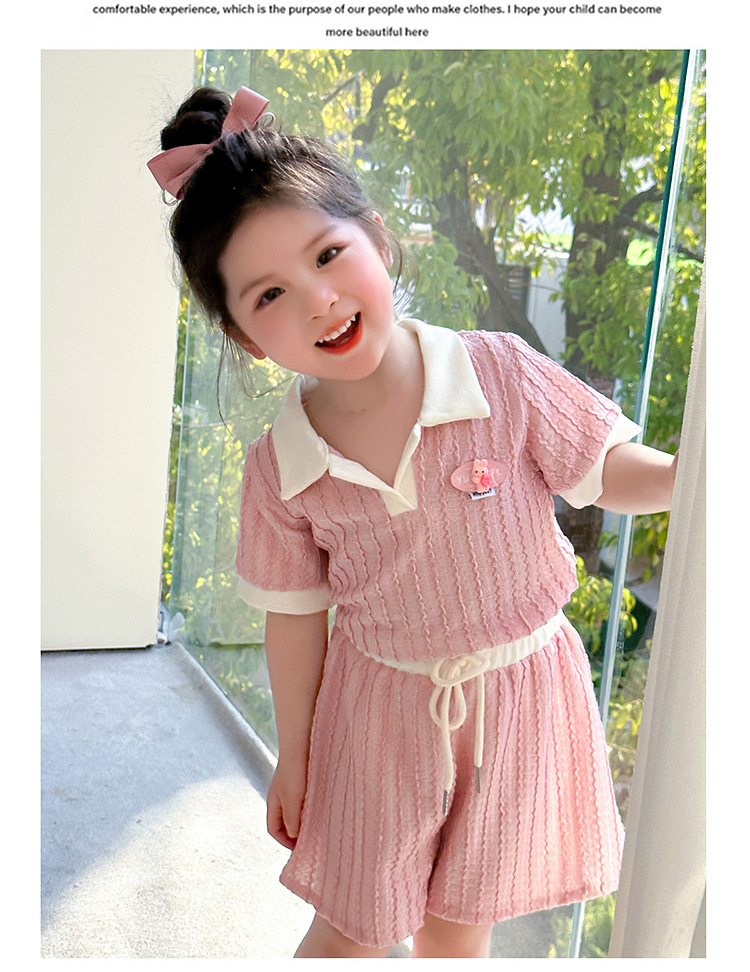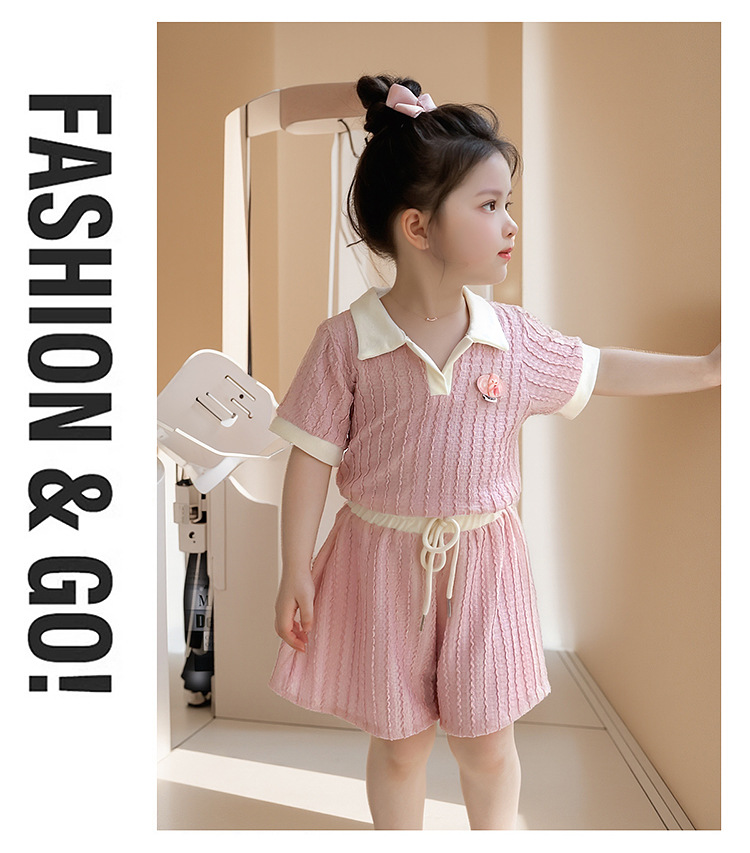 소녀 자카드 캐주얼 세트 2025 여름 새로운 패션 소녀의 서양 스타일 폴로 칼라 짧은 소매 투피스 세트스토어 가기